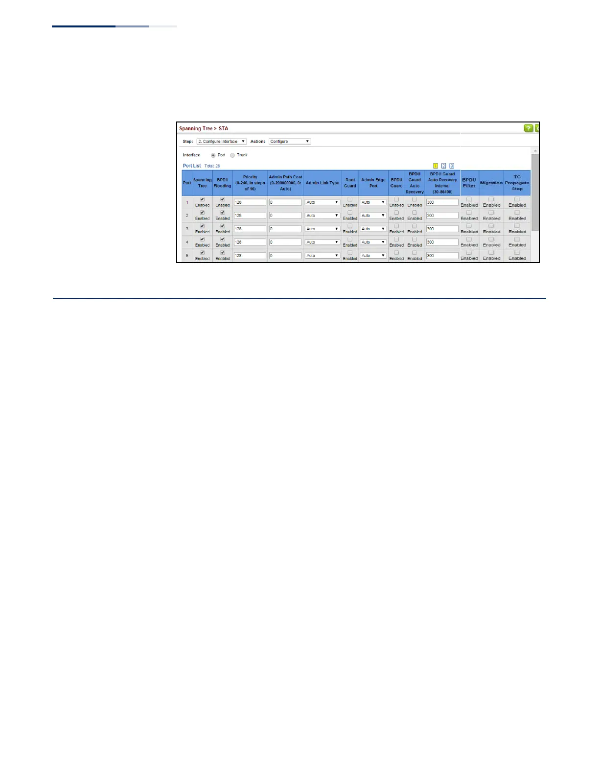 Use the Spanning Tree > STA (Configure Interface - Show Information) page to