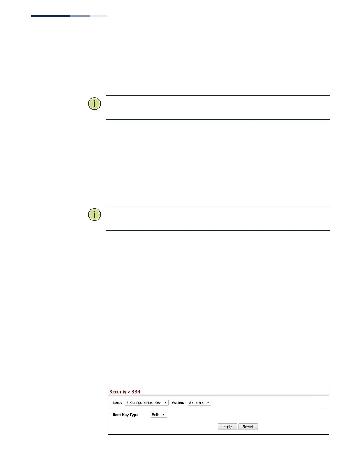 Use the Security > SSH (Configure Host Key - Generate) page to generate a host