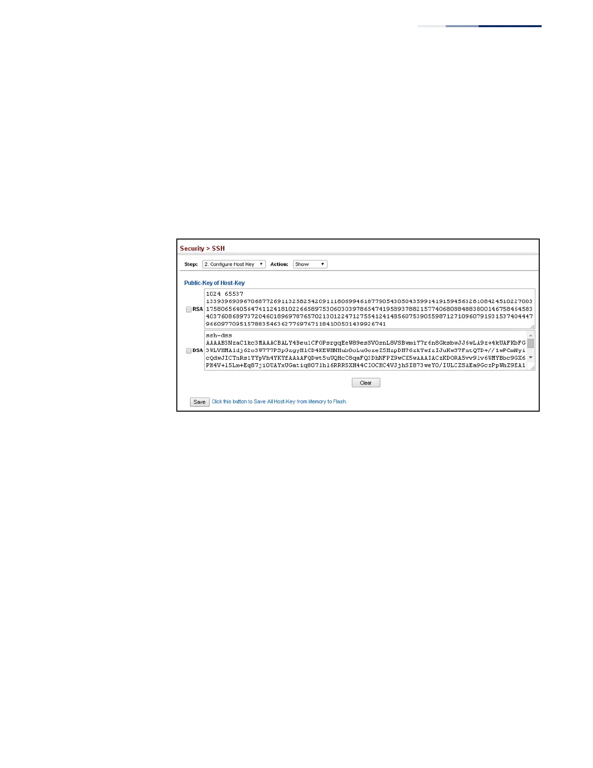 Select the option to save the host key from memory to flash by clicking Save, or