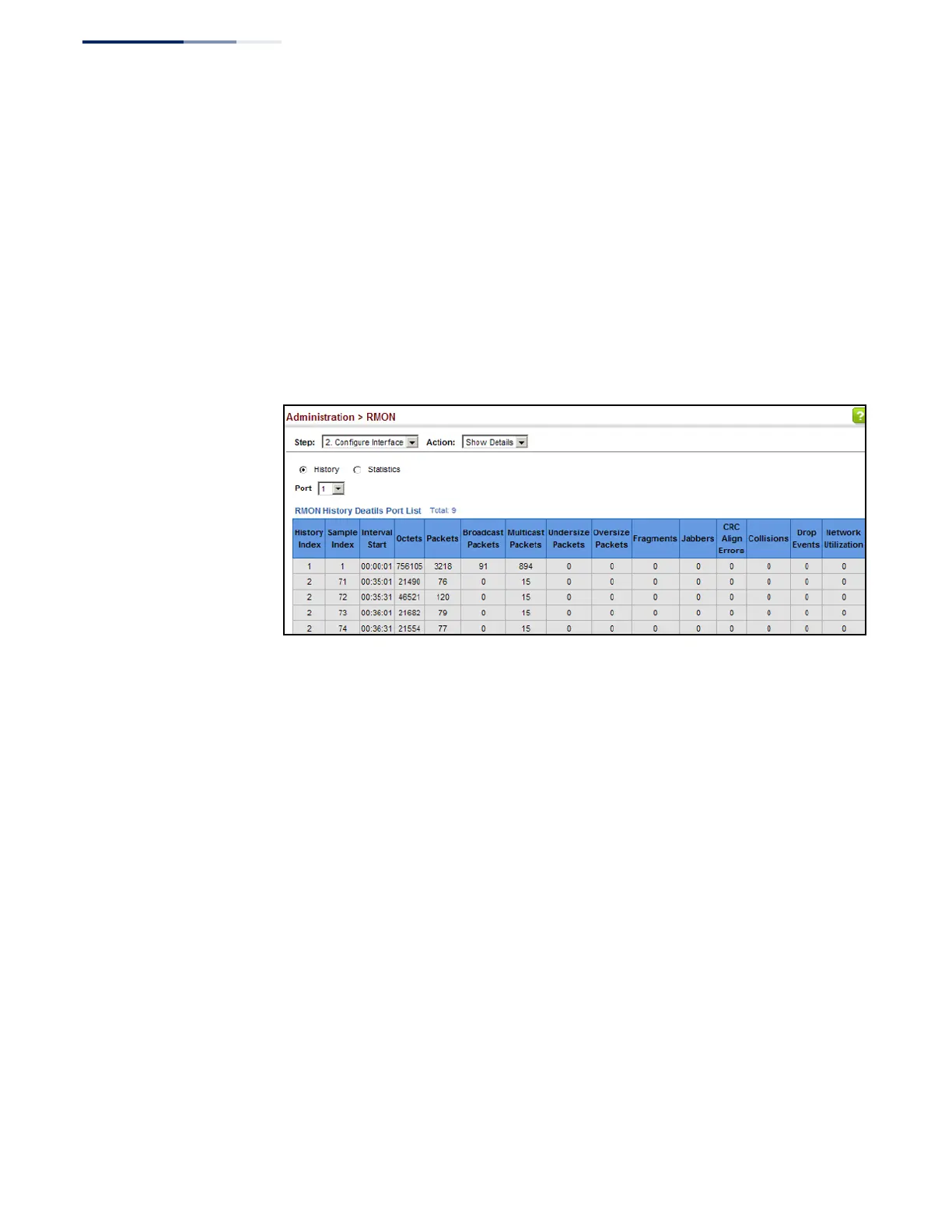 Use the Administration > RMON (Configure Interface - Add - Statistics) page to