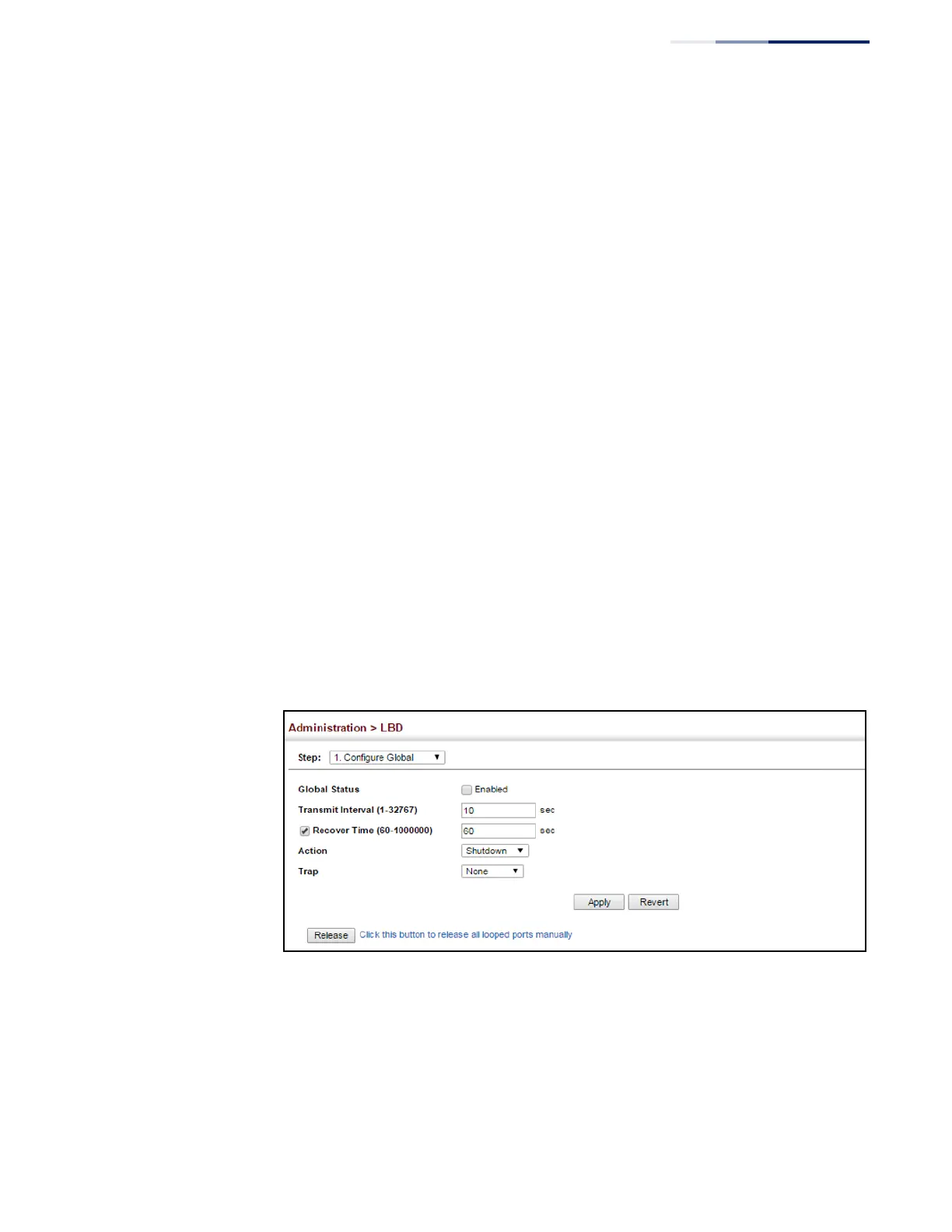 None – Does not send an SNMP trap for loopback detection or recovery.