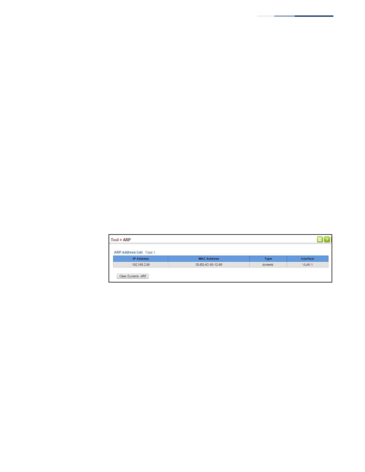 Use the Tools > ARP page to display dynamic or local entries in the ARP cache