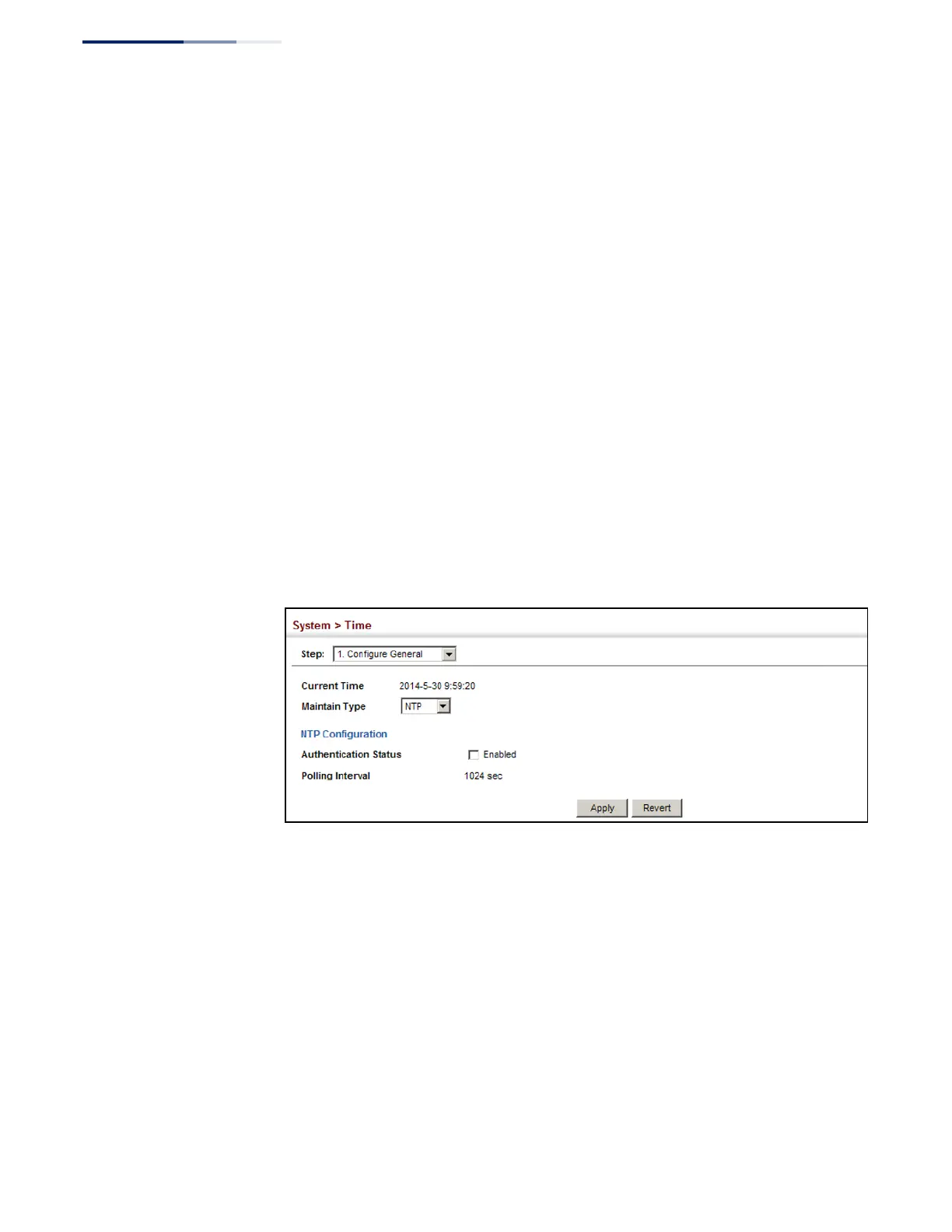 Use the System > Time (Configure Time Server – Configure SNTP Server) page to