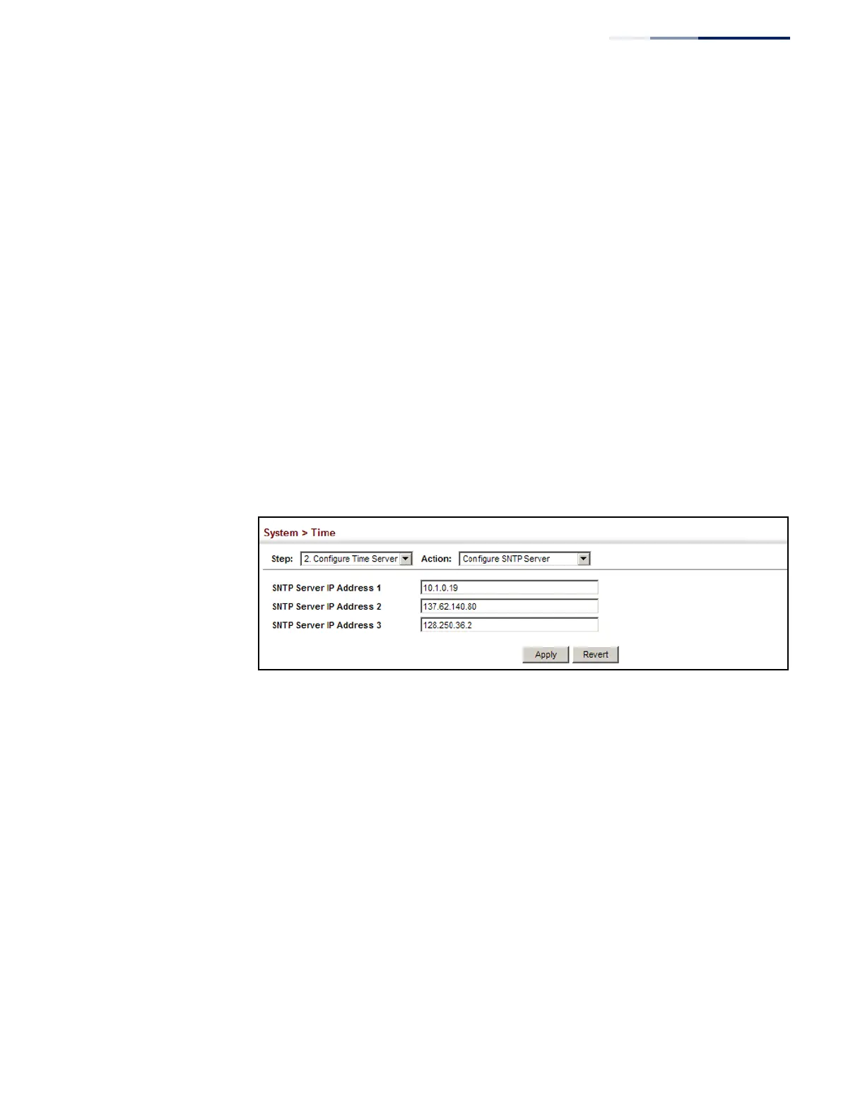 servers. The switch will poll the specified time servers for updates when the