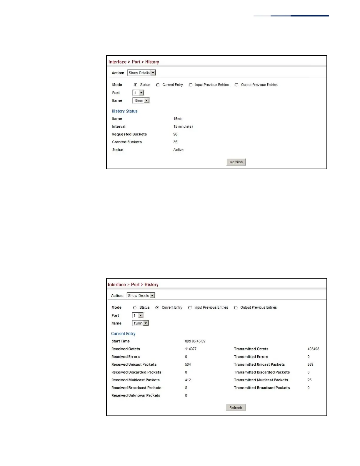 Click Interface, Port, Statistics, or Interface, Trunk, Statistics.