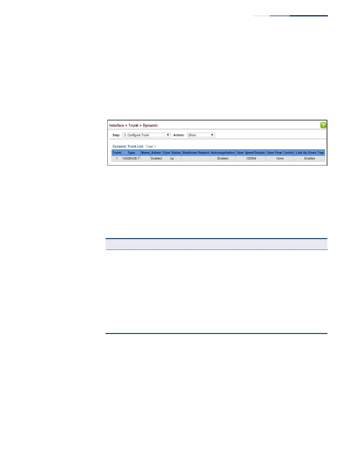 Use the Interface > Trunk > Dynamic (Configure Aggregation Port - Show
