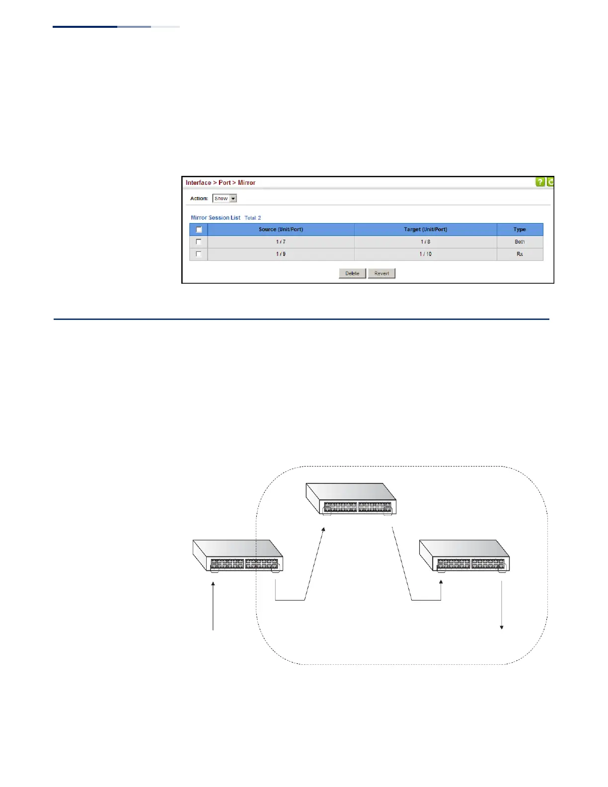 Use the Interface > RSPAN page to mirror traffic from remote switches for analysis