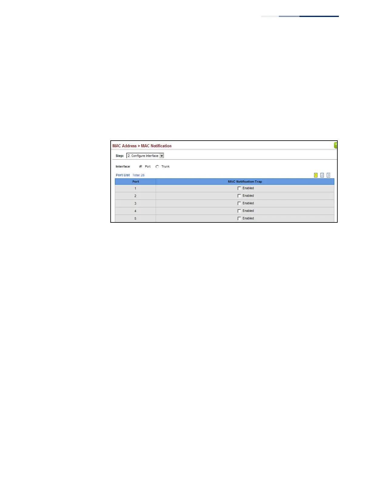 Enable MAC notification traps for the required ports.