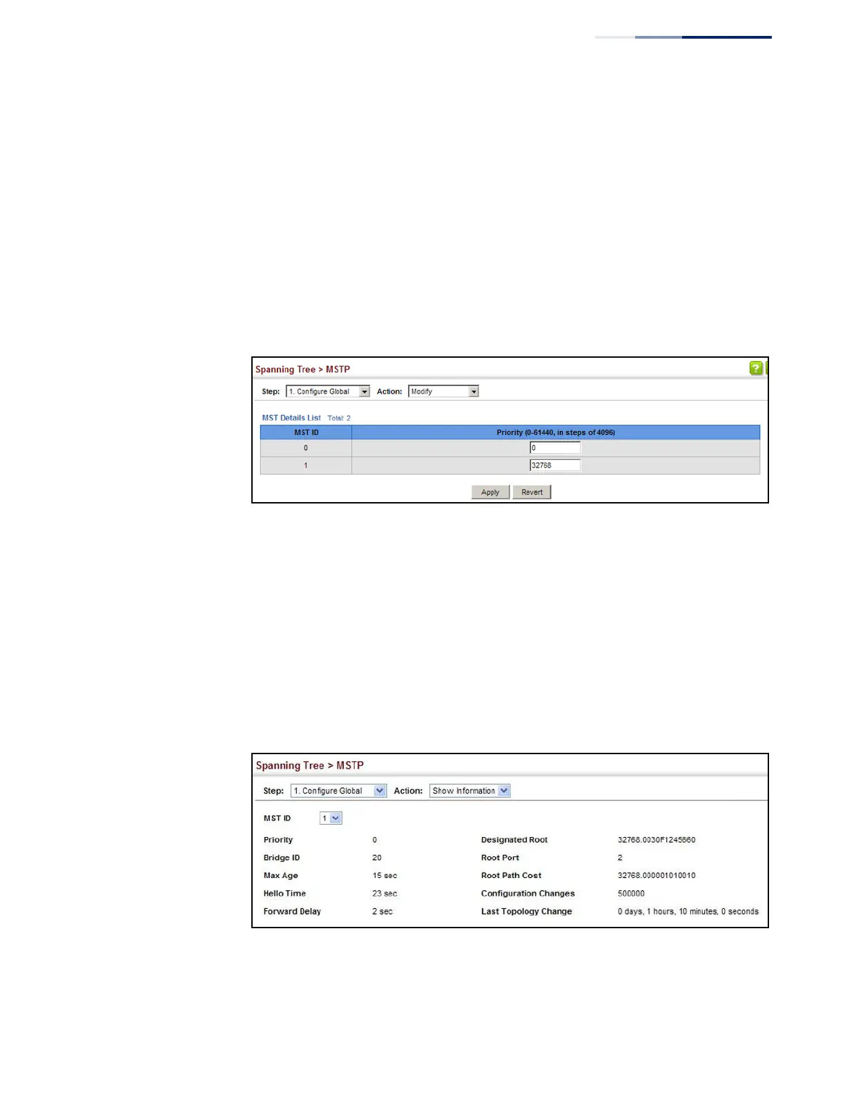 Figure 115: Displaying Global Settings for an MST Instance