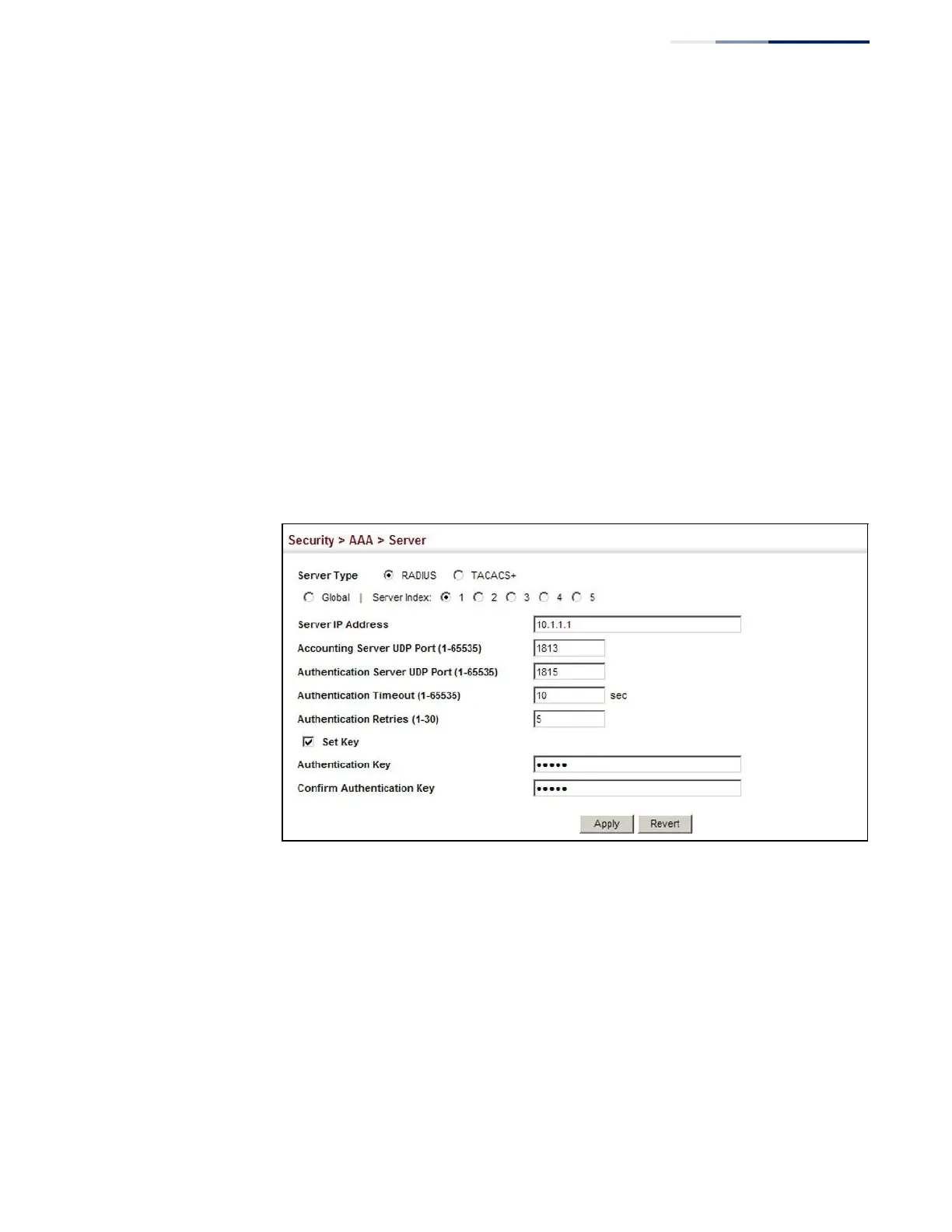 To set or modify the authentication key, mark the Set Key box, enter the key,