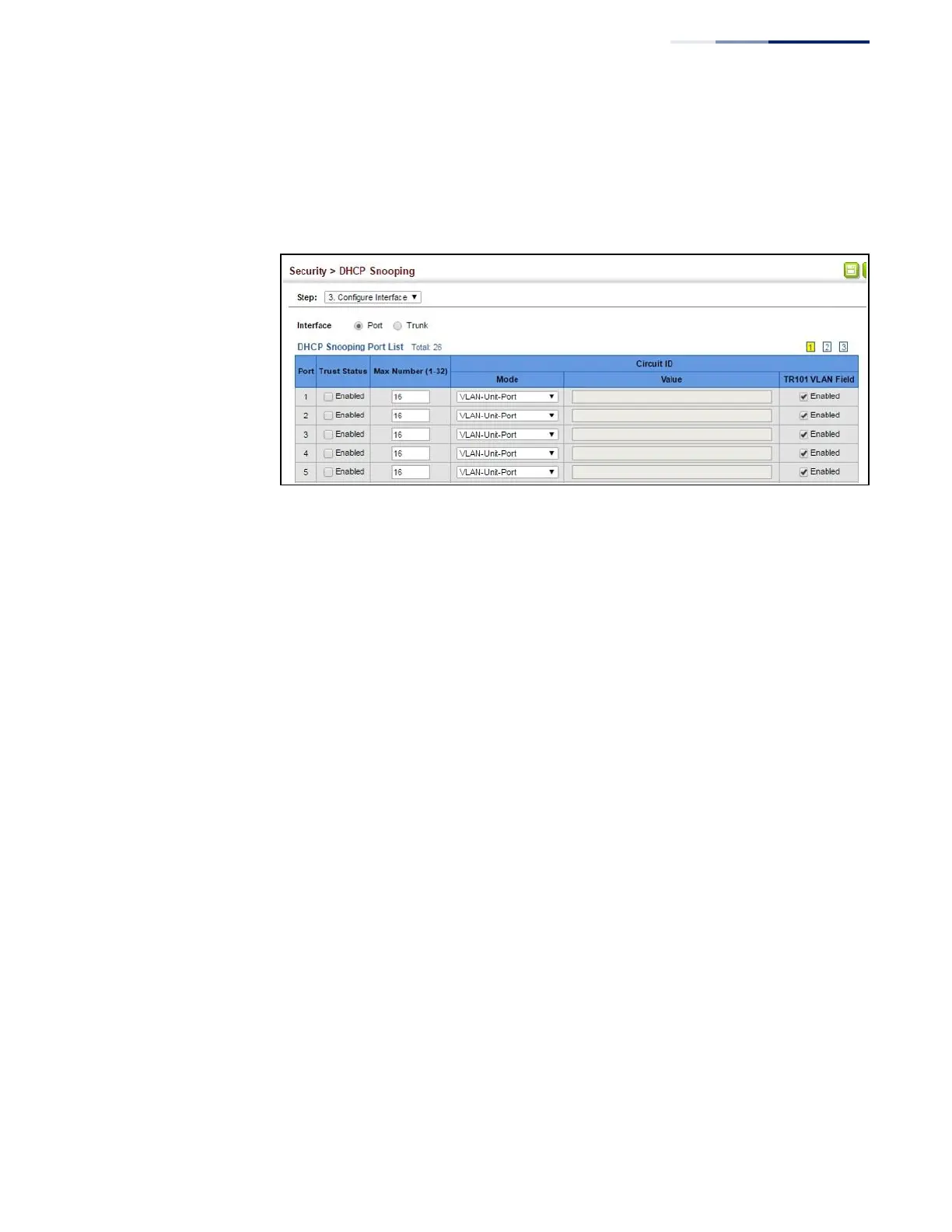 Figure 197: Configuring the Port Mode for DHCP Snooping