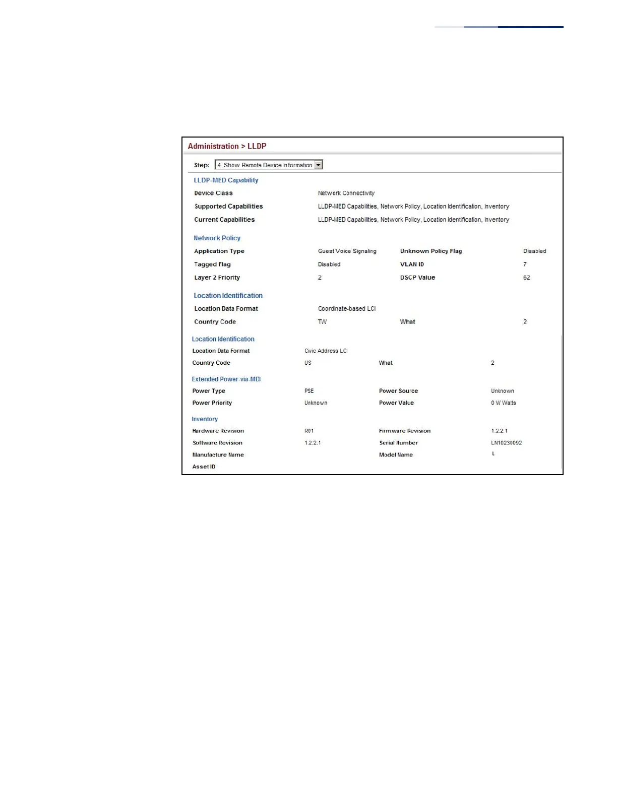 Figure 221: Displaying Remote Device Information for LLDP