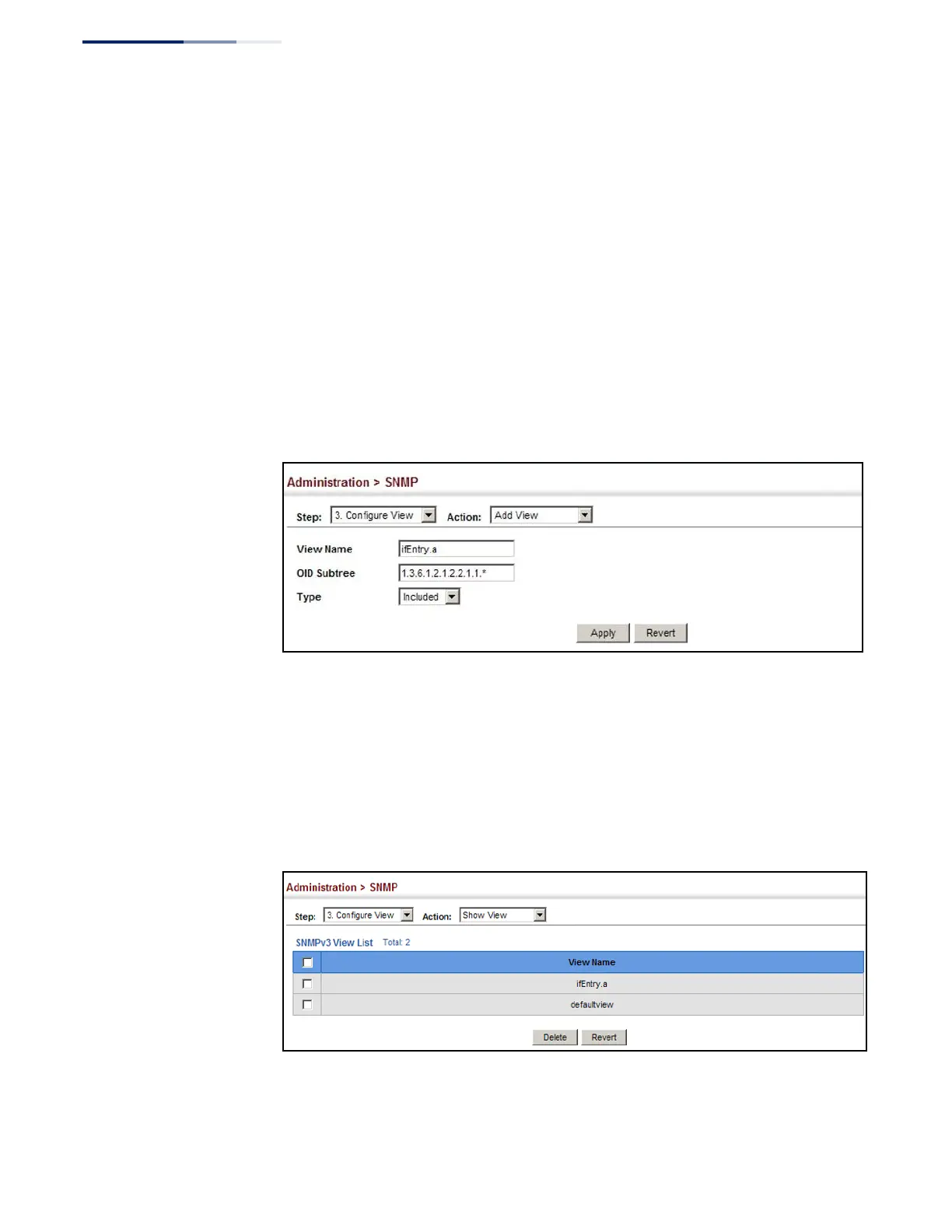 Enter a view name and specify the initial OID subtree in the switch’s MIB