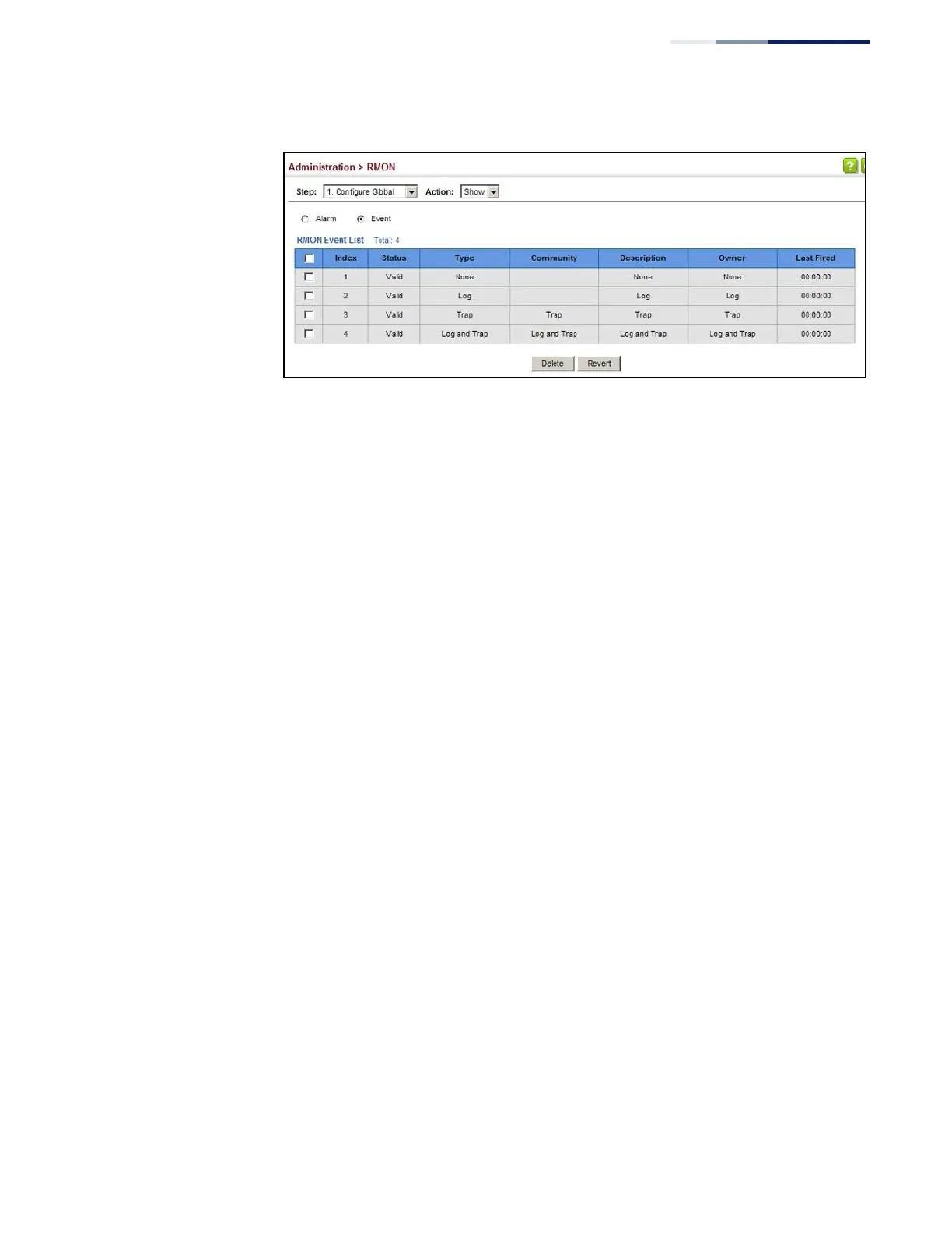 Figure 251: Showing Configured RMON Events