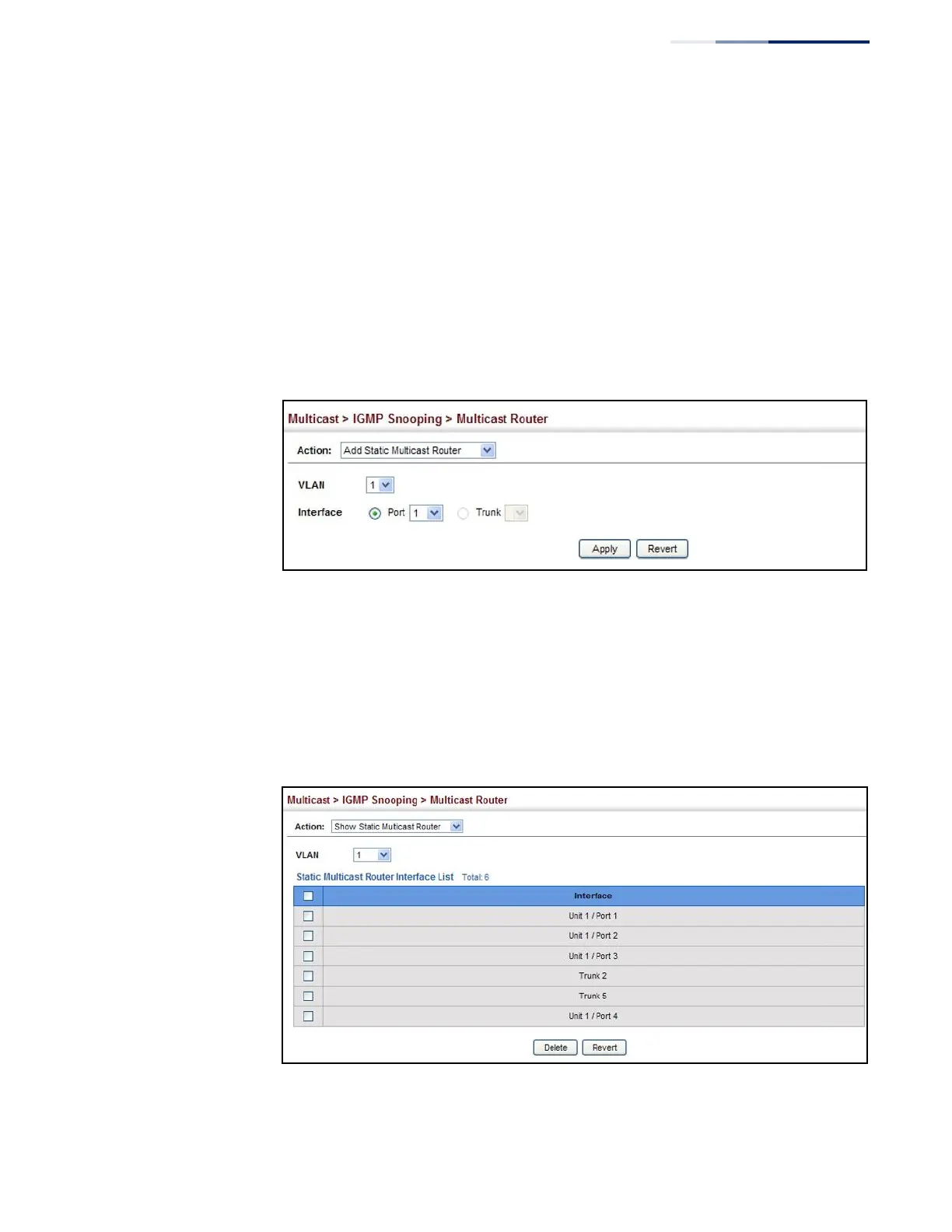select the port or trunk attached to the multicast router.