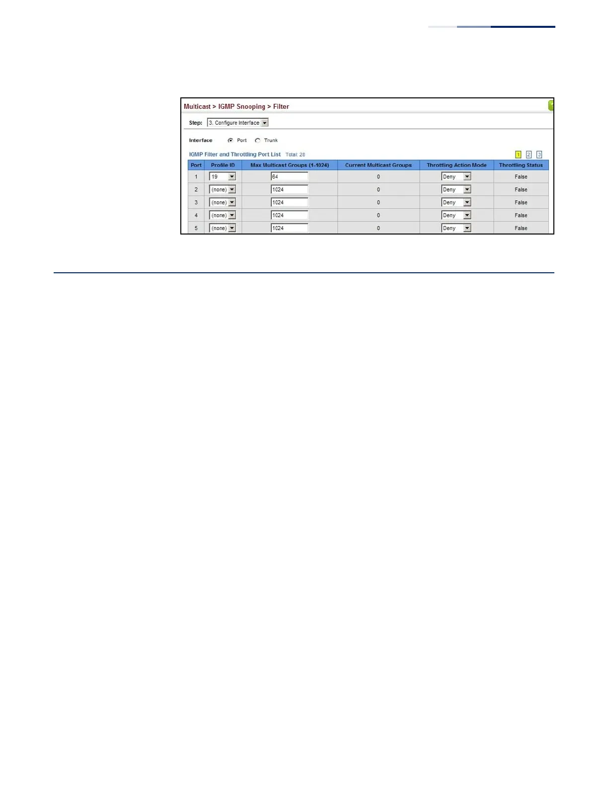 Figure 298: Configuring IGMP Filtering and Throttling Interface Settings