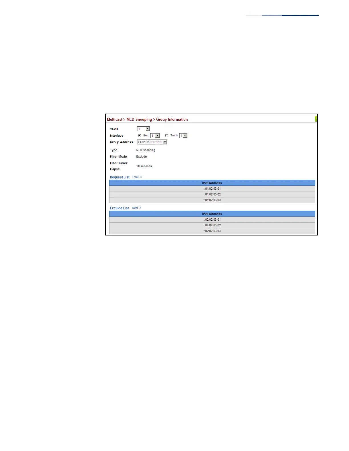 Use the Multicast > IGMP Snooping > Statistics pages to display MLD snooping