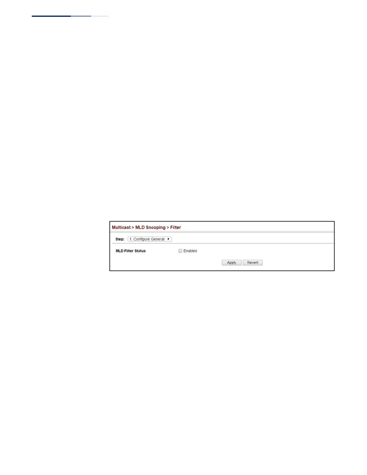 Use the Multicast > MLD Snooping > Filter (Configure General) page to enable