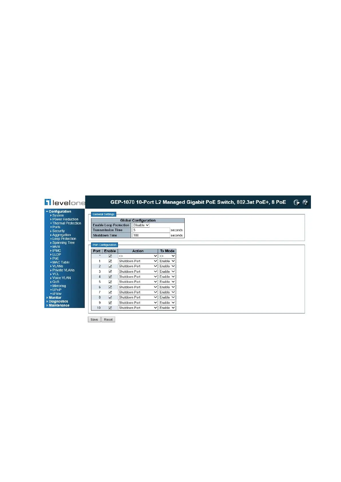 ◆ Transmission Time – The interval between each loop protection PDU sent on each port.