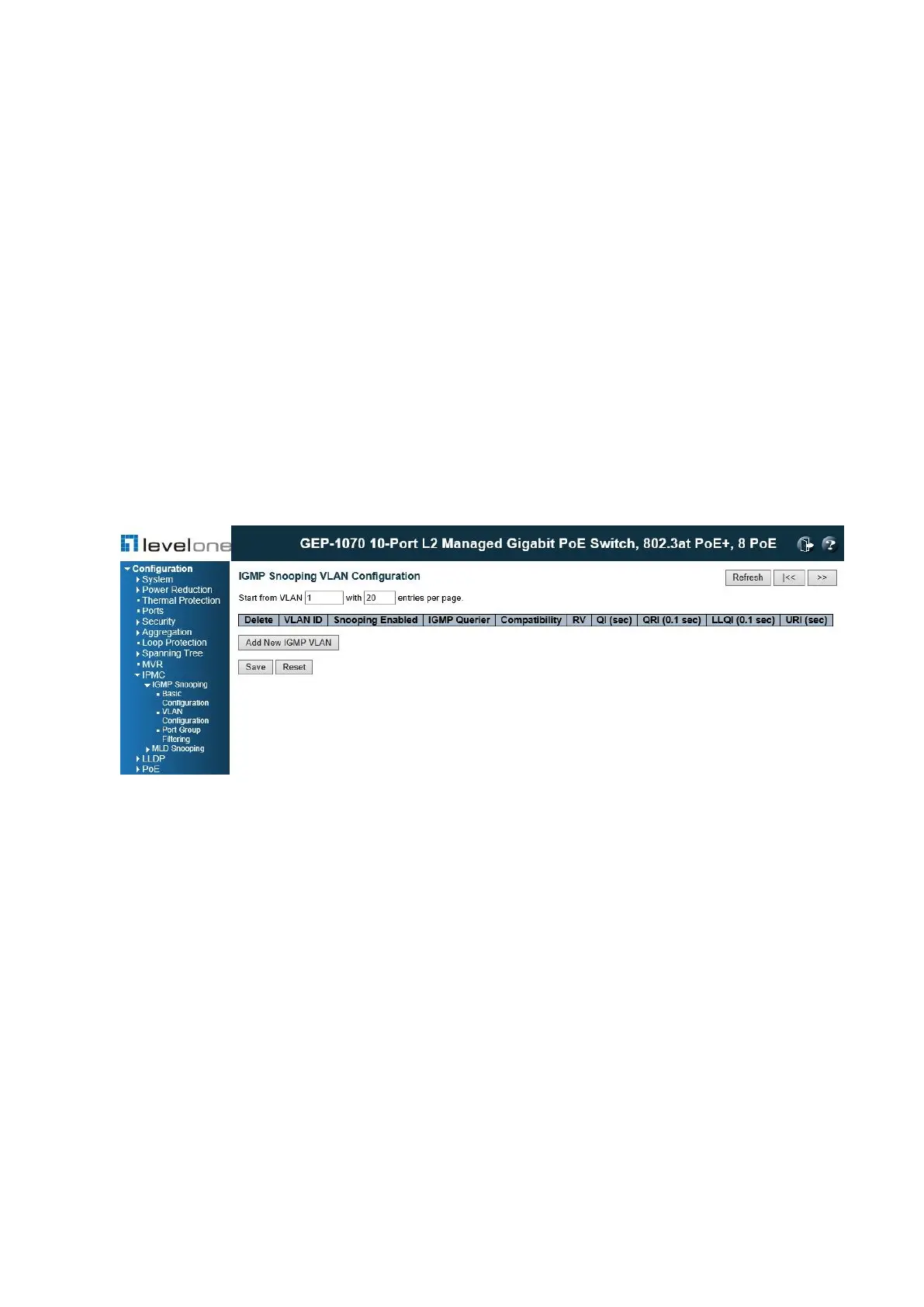 Configuration \ IPMC \ IGMP Snooping \ VLAN Configuration