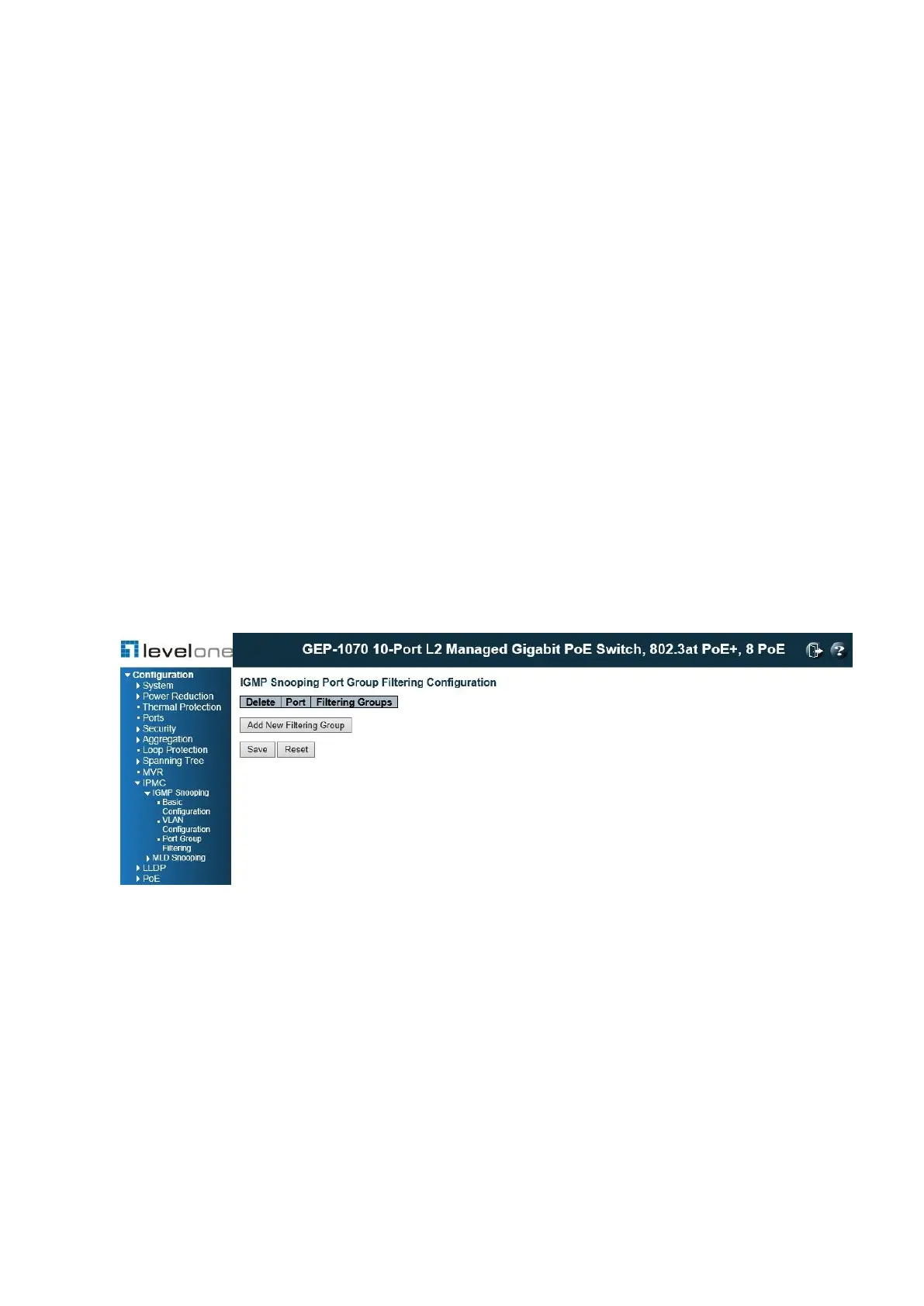 Configuration \ IPMC \ IGMP Snooping \ Port Group Filtering
