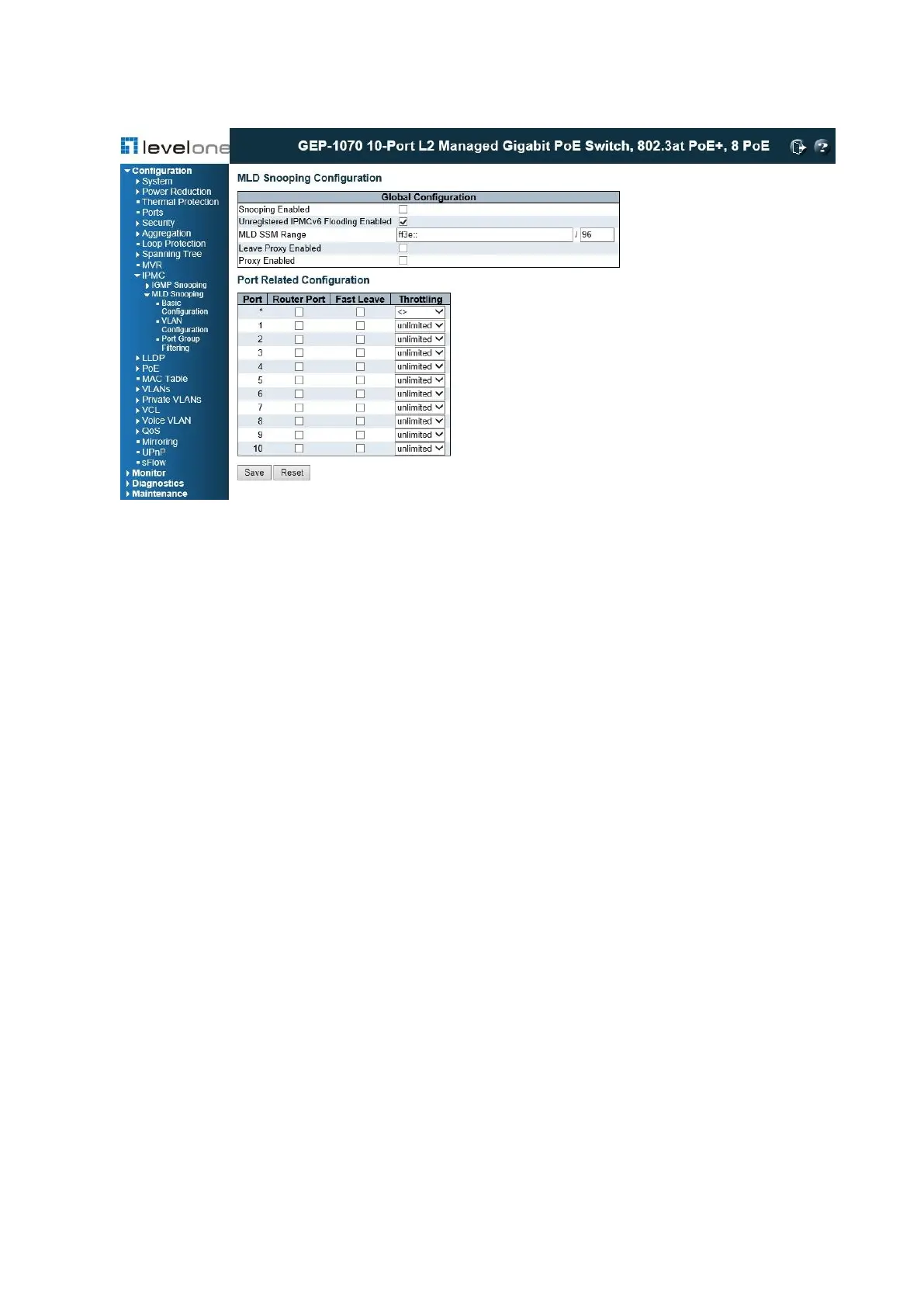 Figure 58: Configuring Global and Port-related Settings for MLD Snooping