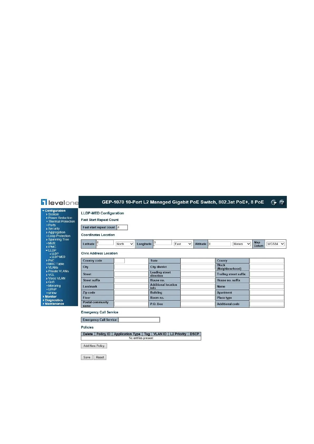 Use the LLDP-MED Configuration page to set the device information which is advertised for