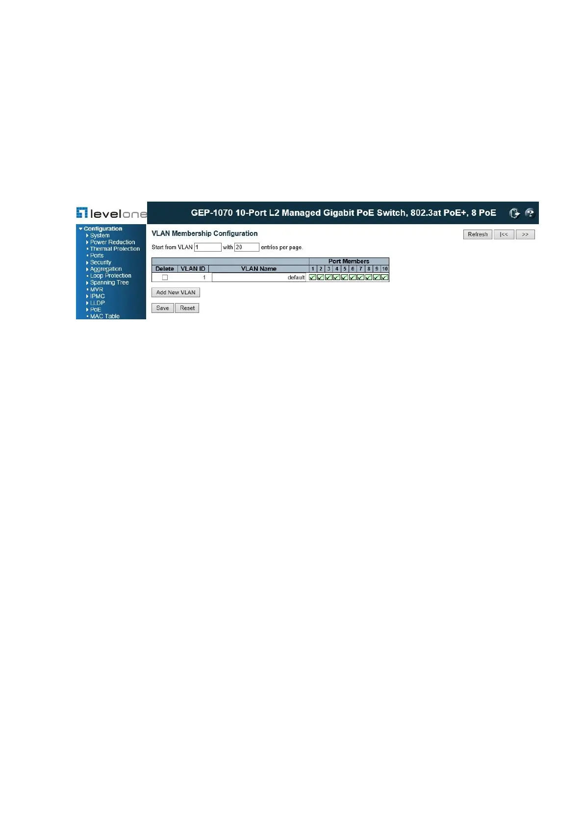 1. Click Configuration, VLANs, VLAN Membership.