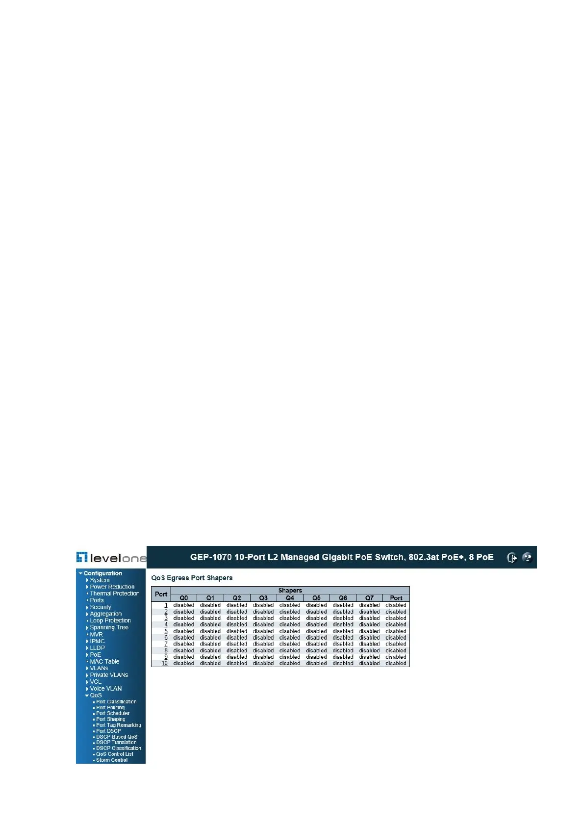Use the QoS Egress Port Shapers page to show an overview of the QoS Egress Port