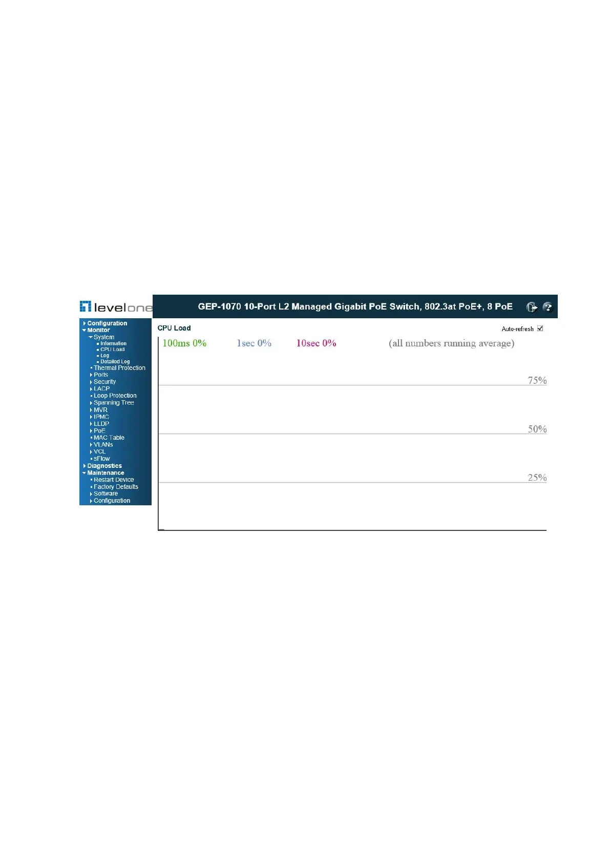 Use the CPU Load page to display information on CPU utilization. The load is averaged over