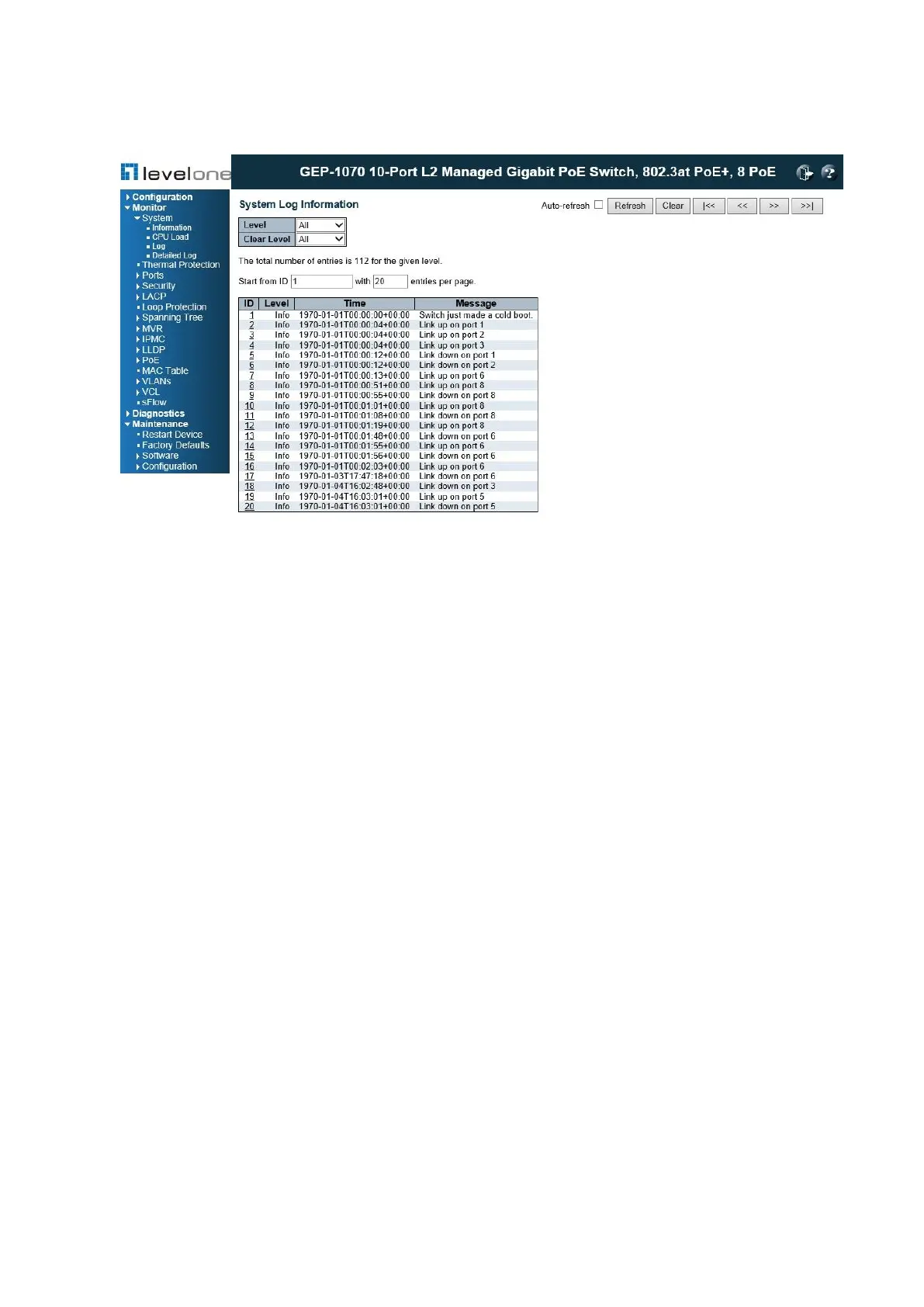 Figure 93: System Log Information
