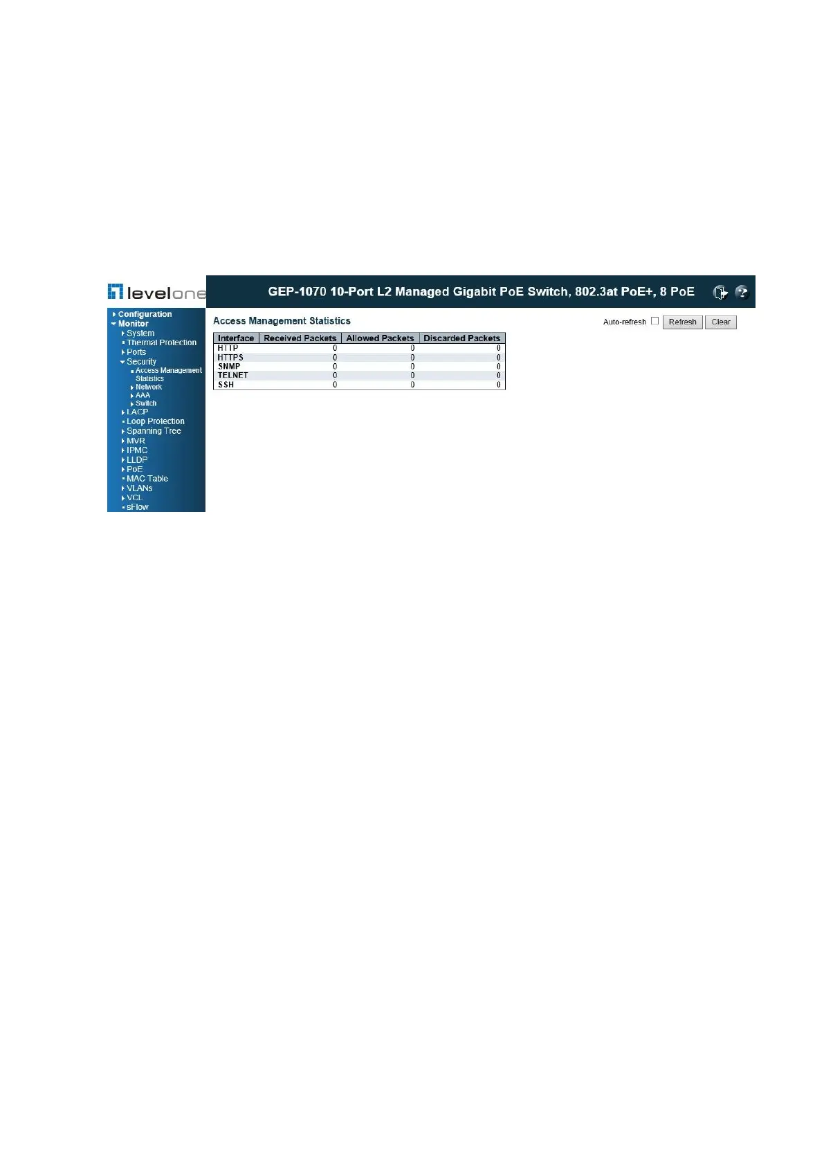 To display the information on management packets, click Monitor, System, Access