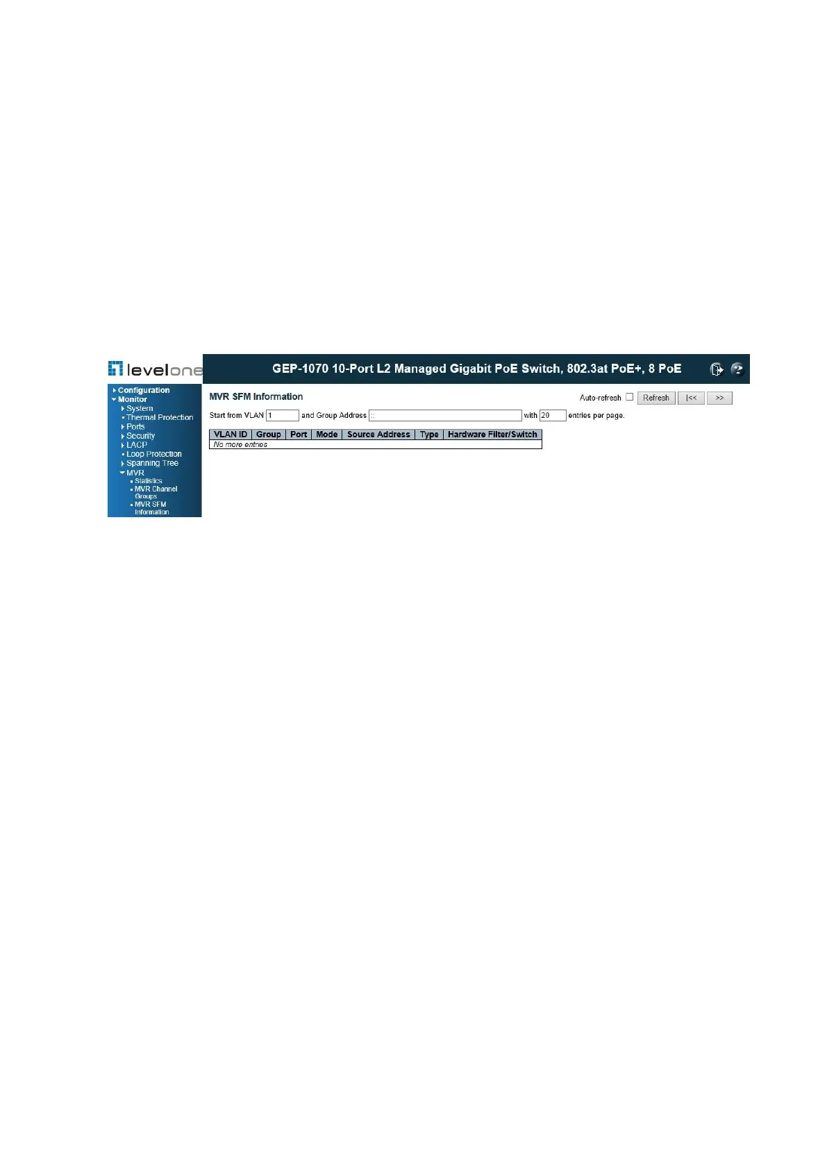 To display information for MVR channel groups, click Monitor, MVR, and MVR SFM