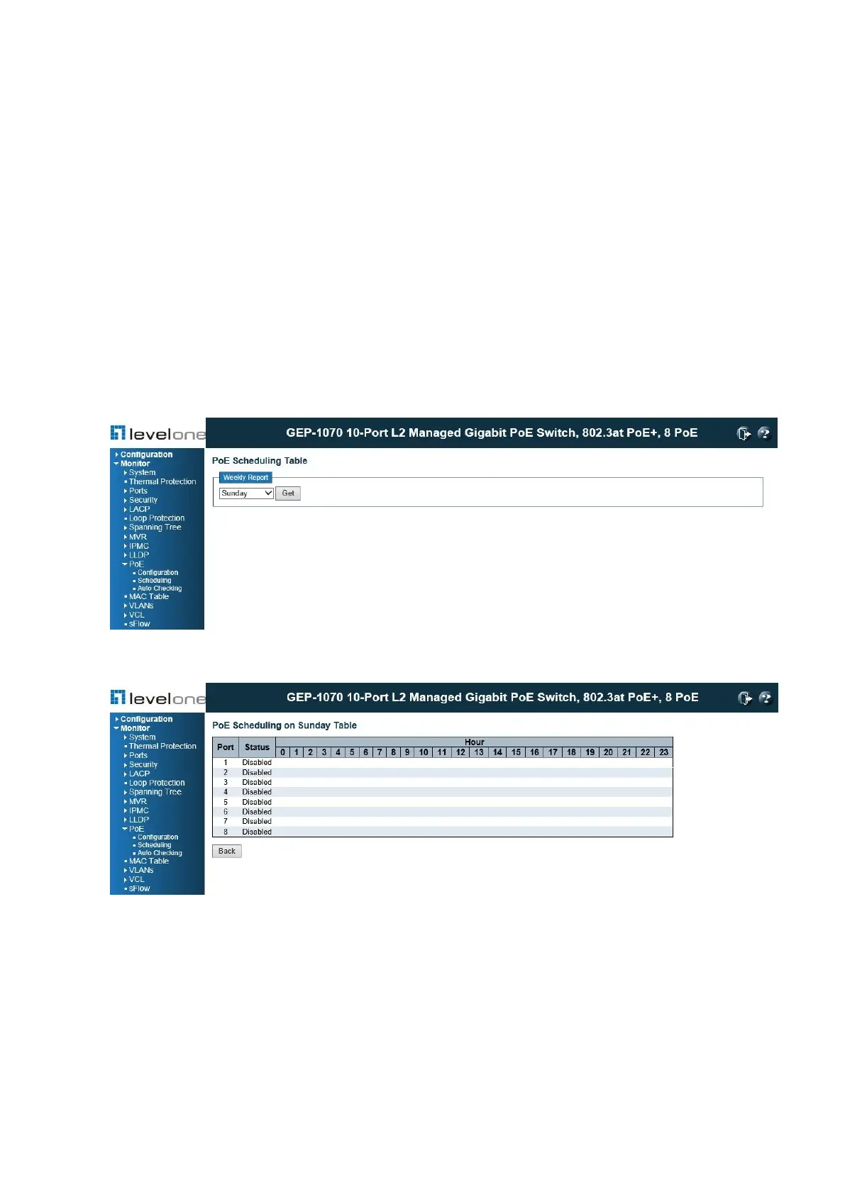 ◆ Weekly Report – This shows the daily PoE Scheduling in the week.