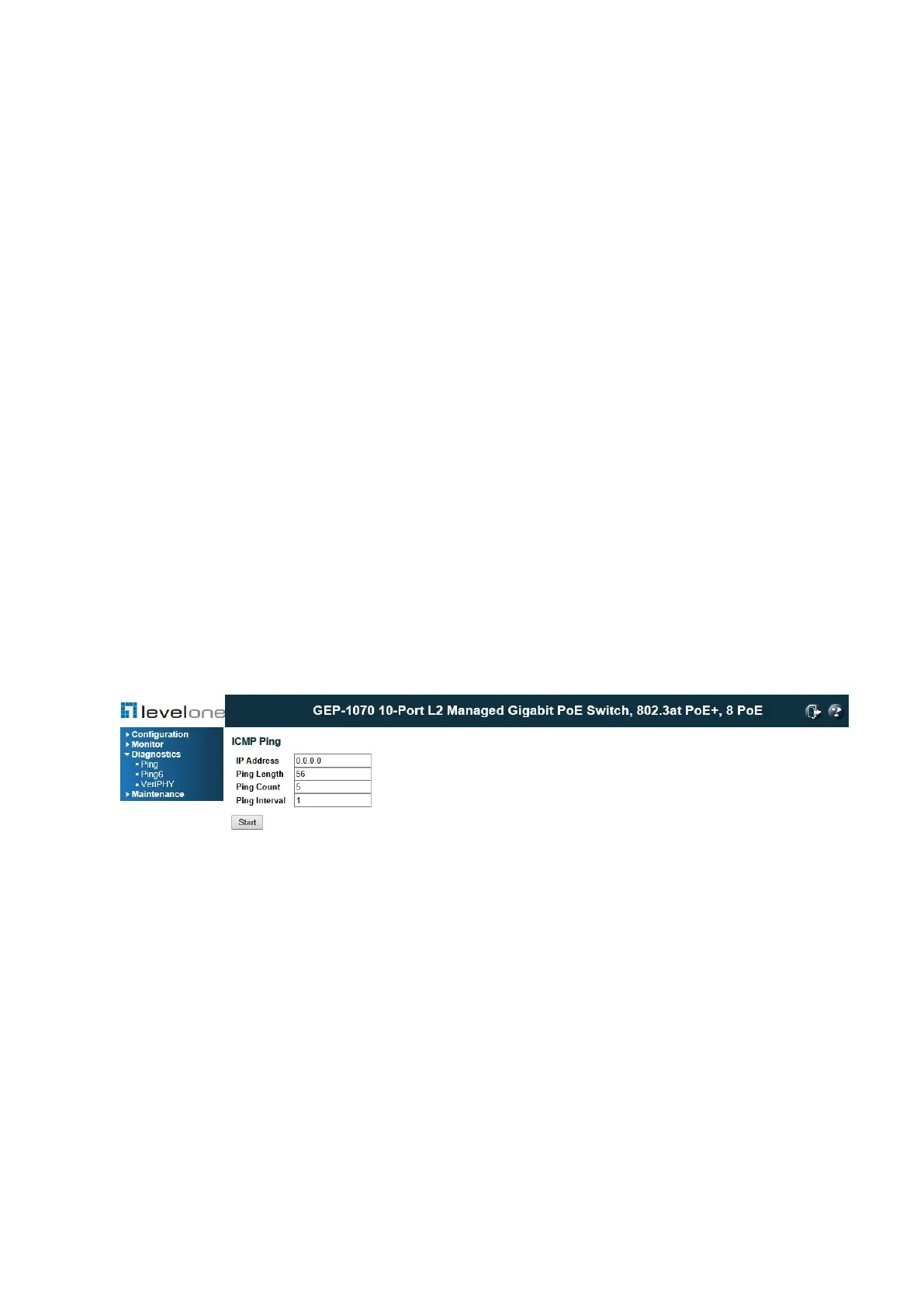 This Ping page allows you to issue ICMP ping packets to troubleshoot IP connectivity