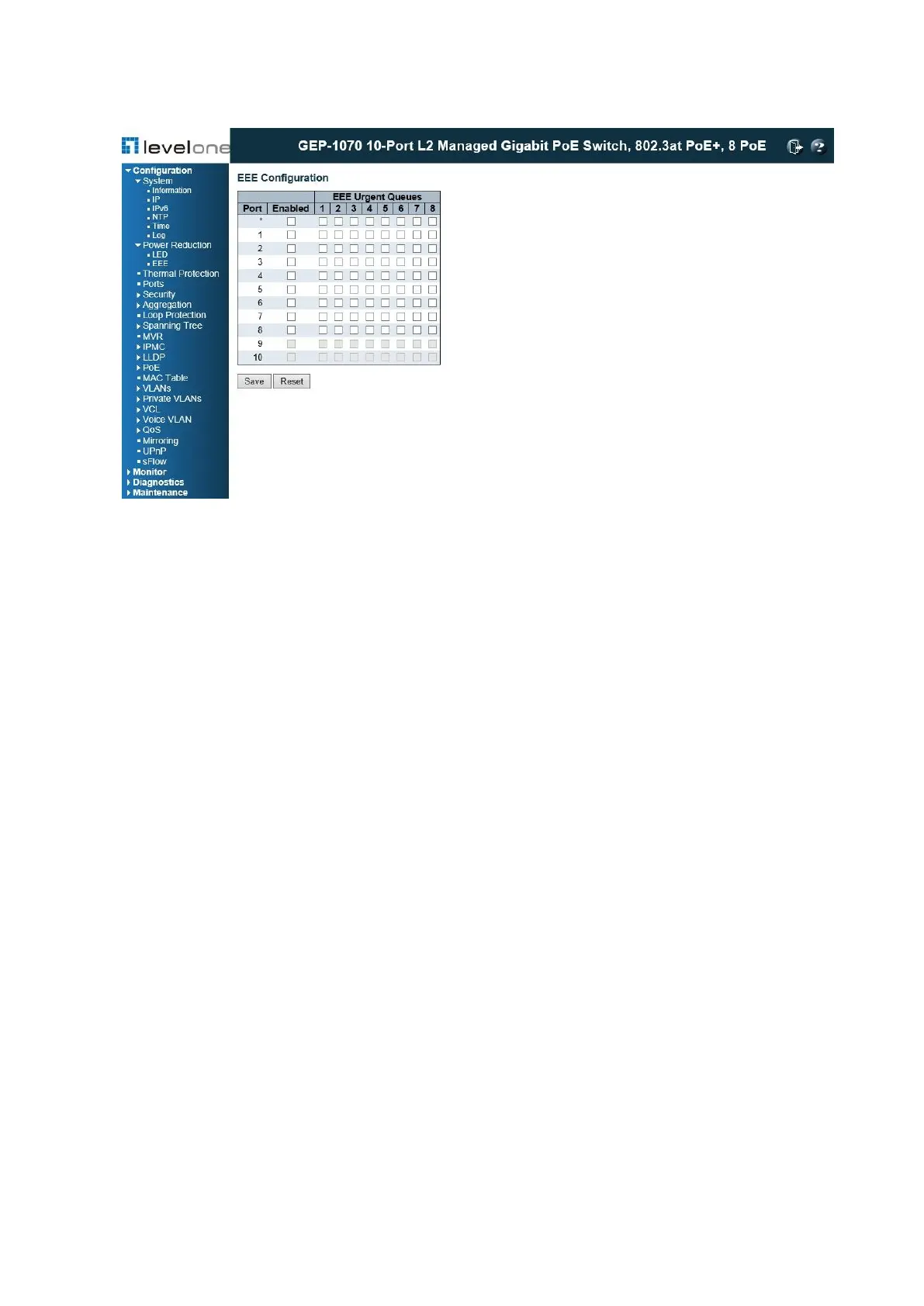 ◆ EEE Urgent Queues – Specifies which are to transmit data after the maximum latency