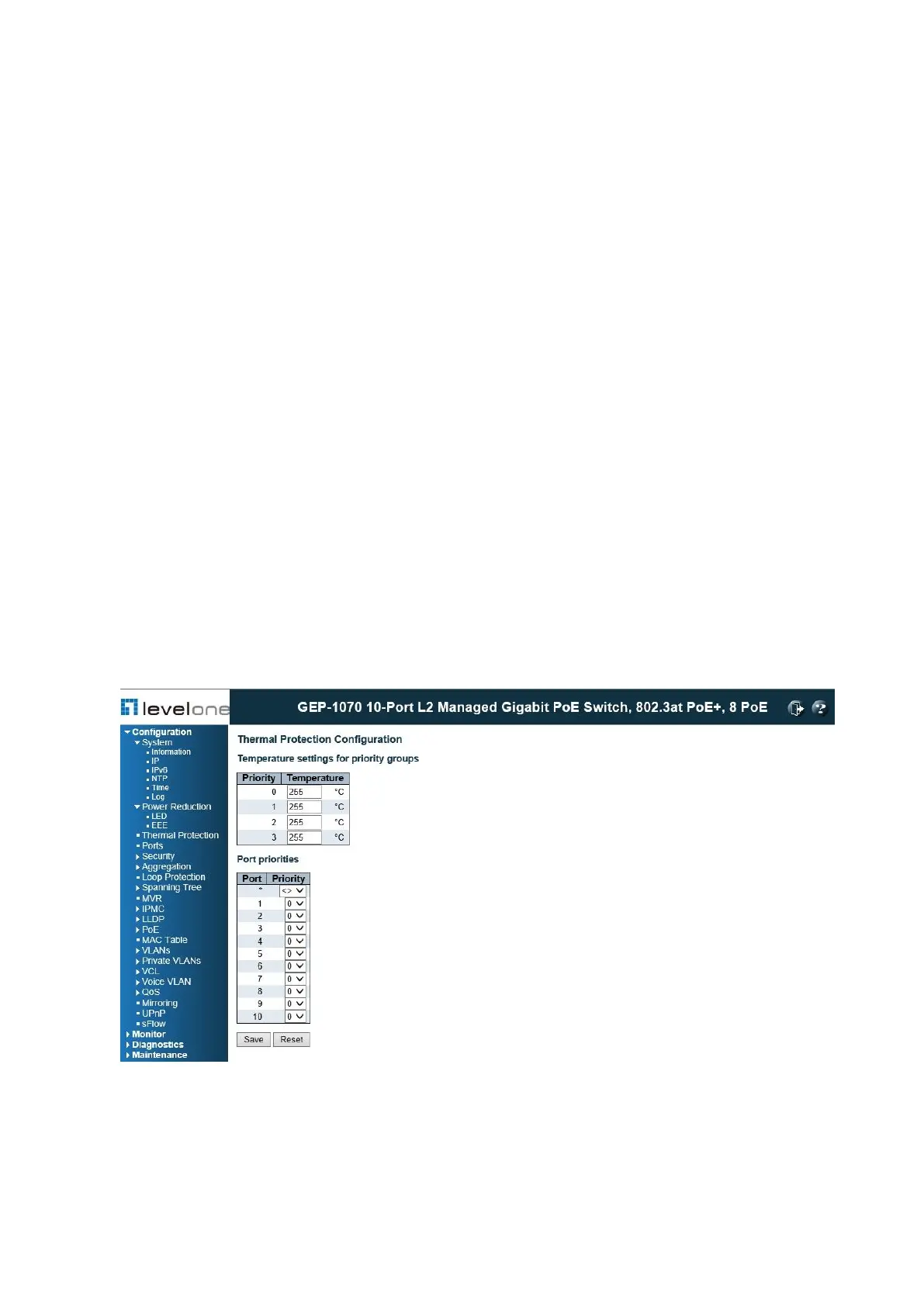 Use the Thermal Protection Configuration page to set temperature priority levels, and
