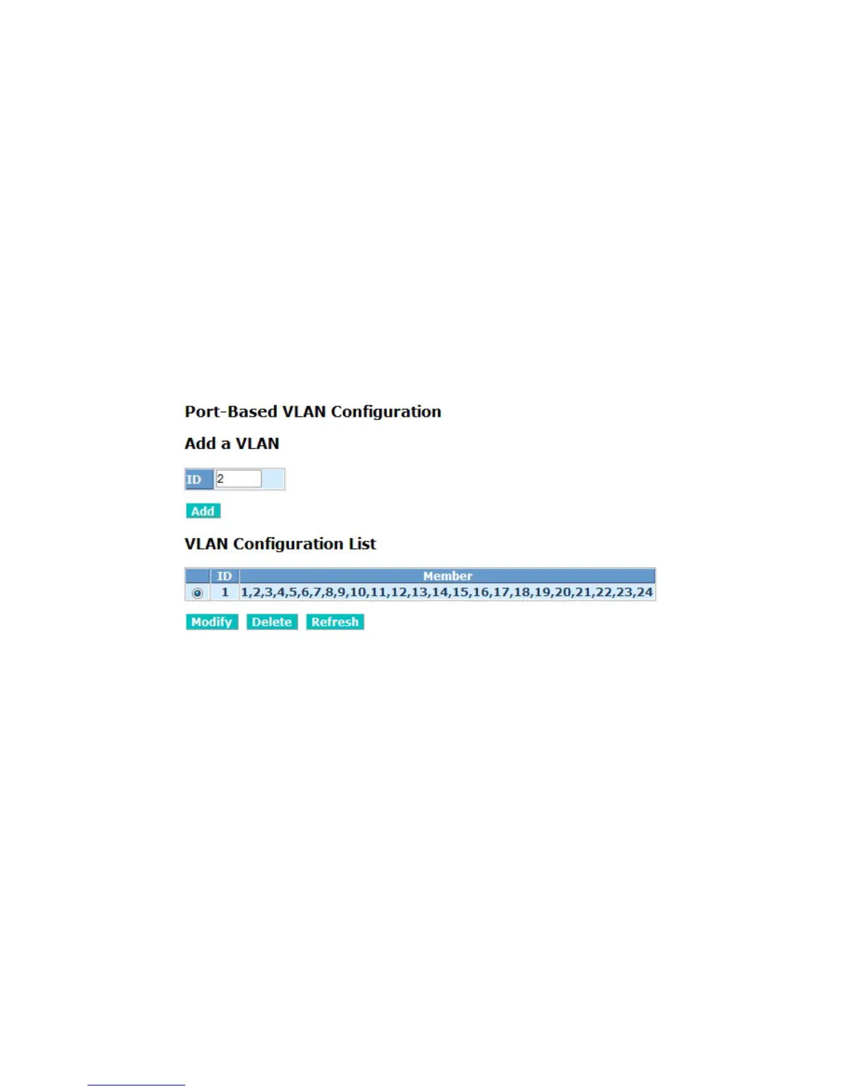 If you are in port-based VLAN, it will just show the ID、Member of the existed
