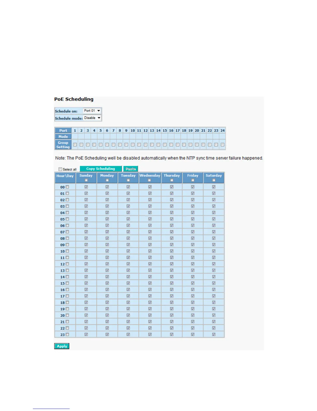 This page allows the user to make a perfect schedule of PoE power supply.
