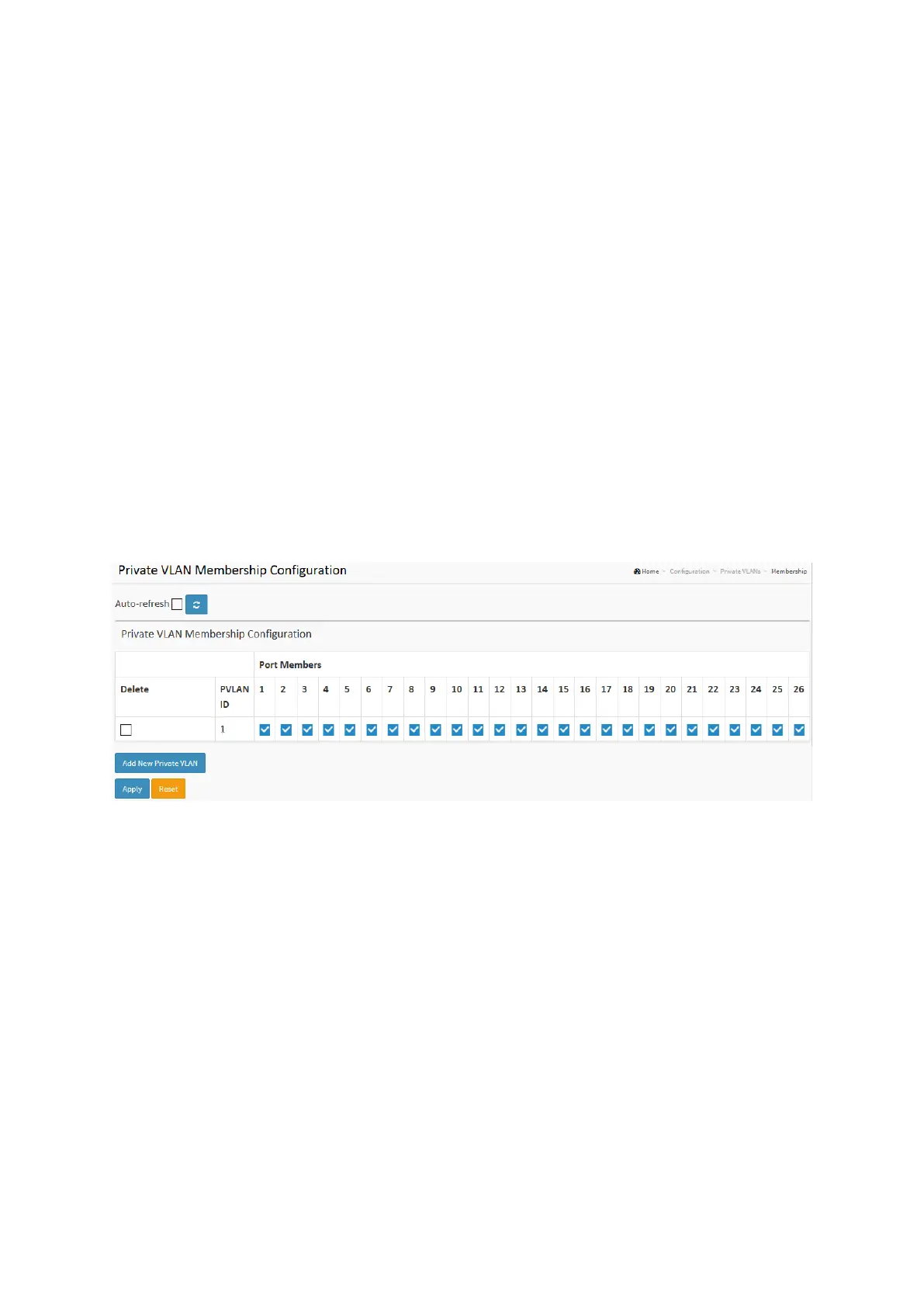 To delete a private VLAN entry, check this box. The entry will be deleted during the next save.