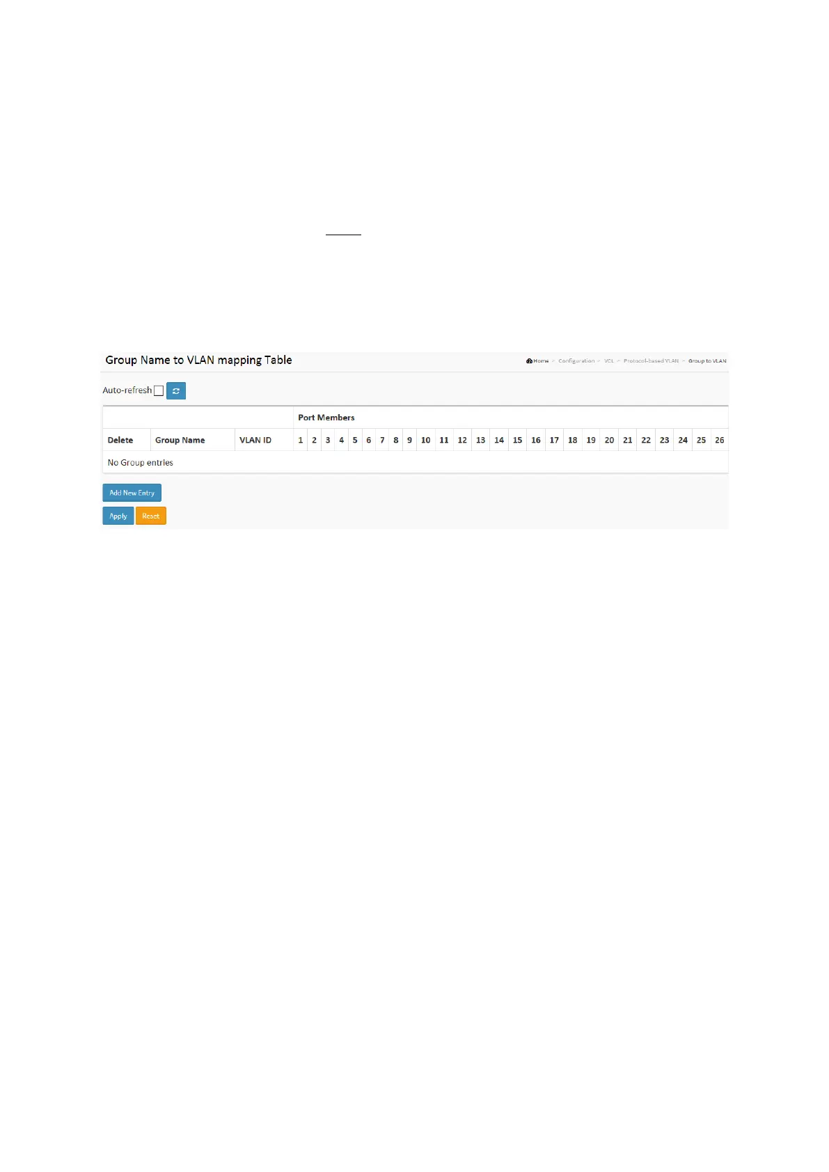 1. Click Group Name VLAN configuration and add new entry.