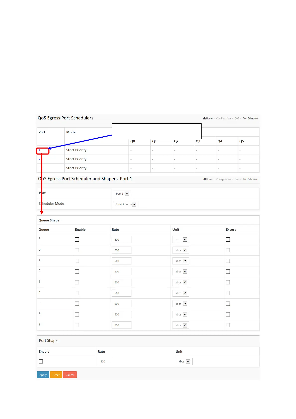 1. Click Configuration, QoS, Port Schedulers