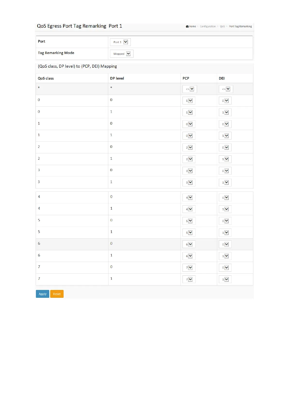 Controls the default PCP and DEI values used when the mode is set to Default.