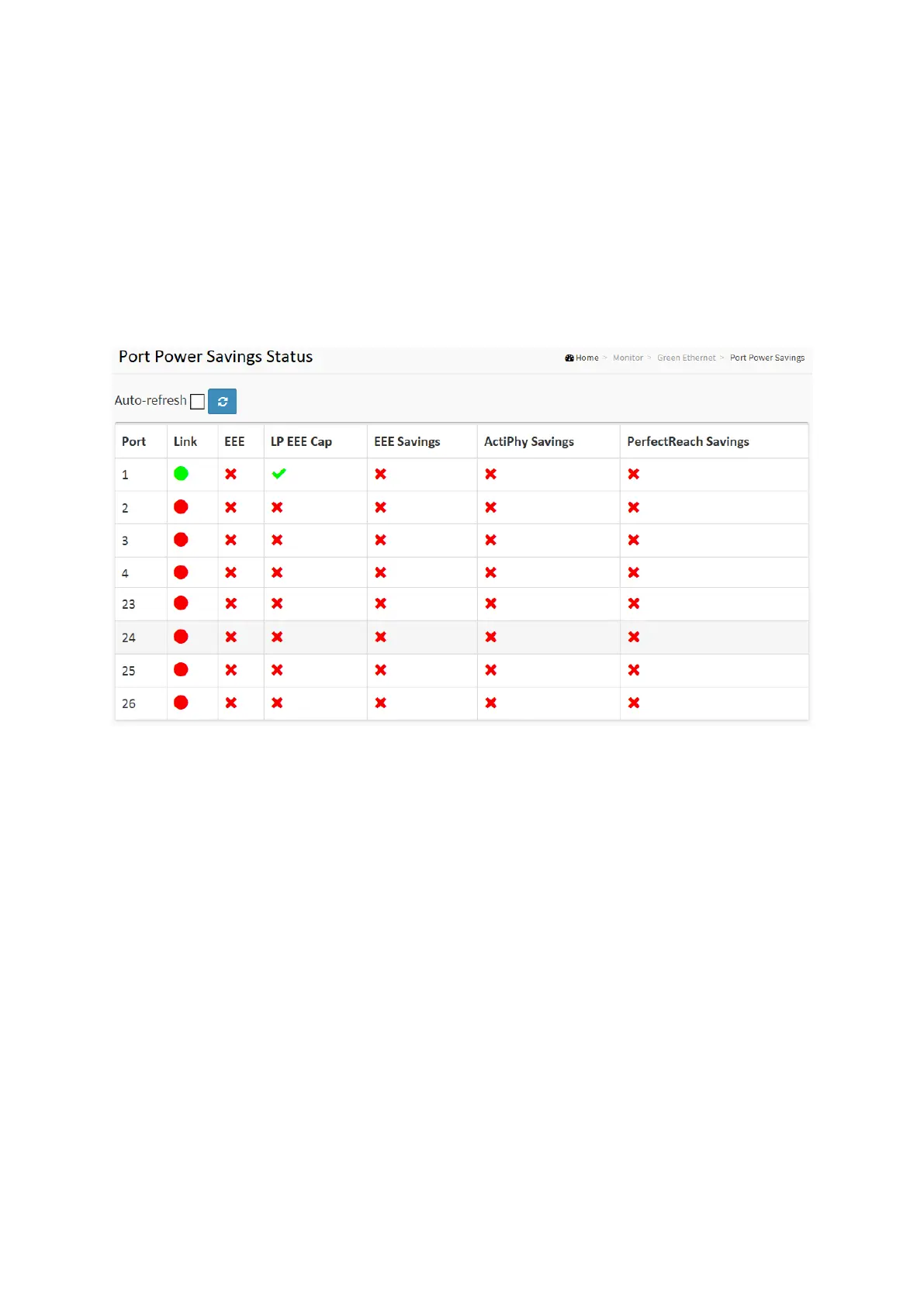 Shows if EEE is enabled for the port (reflects the settings at the Port Power Savings
