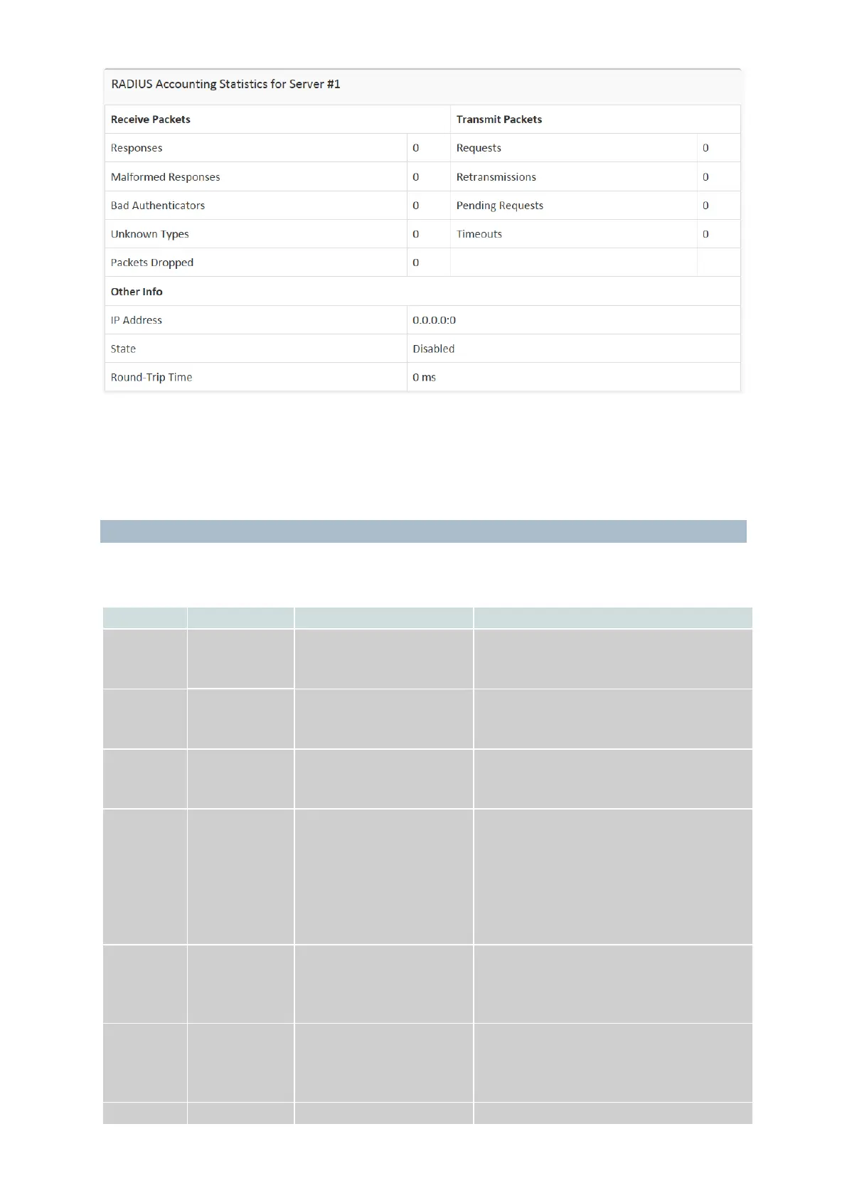 RADIUS authentication server packet counter. There are seven receive and four transmit