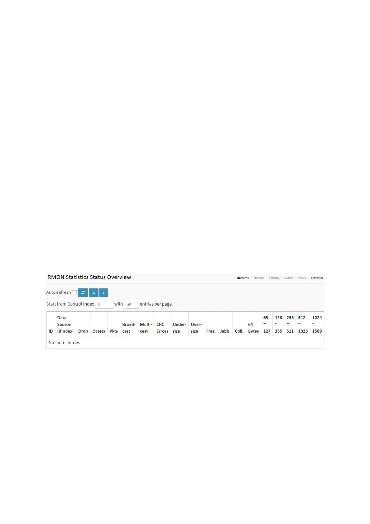 This section provides an overview of RMON Statistics entries. Each page shows up to 99 entries