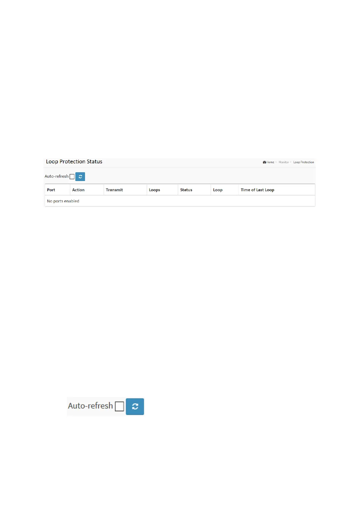 This section displays the loop protection port status the ports of the currently selected switch.