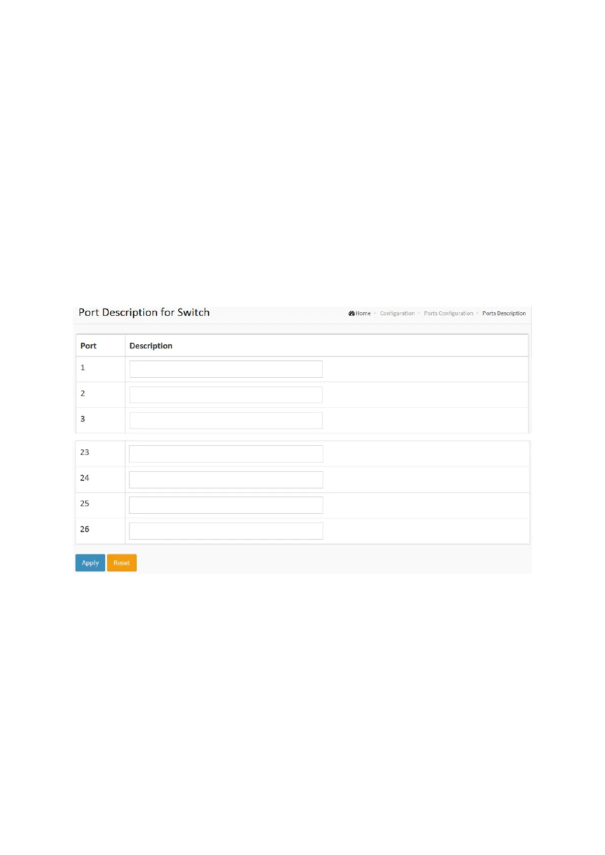 1. Click Configuration, Port, then Port Description