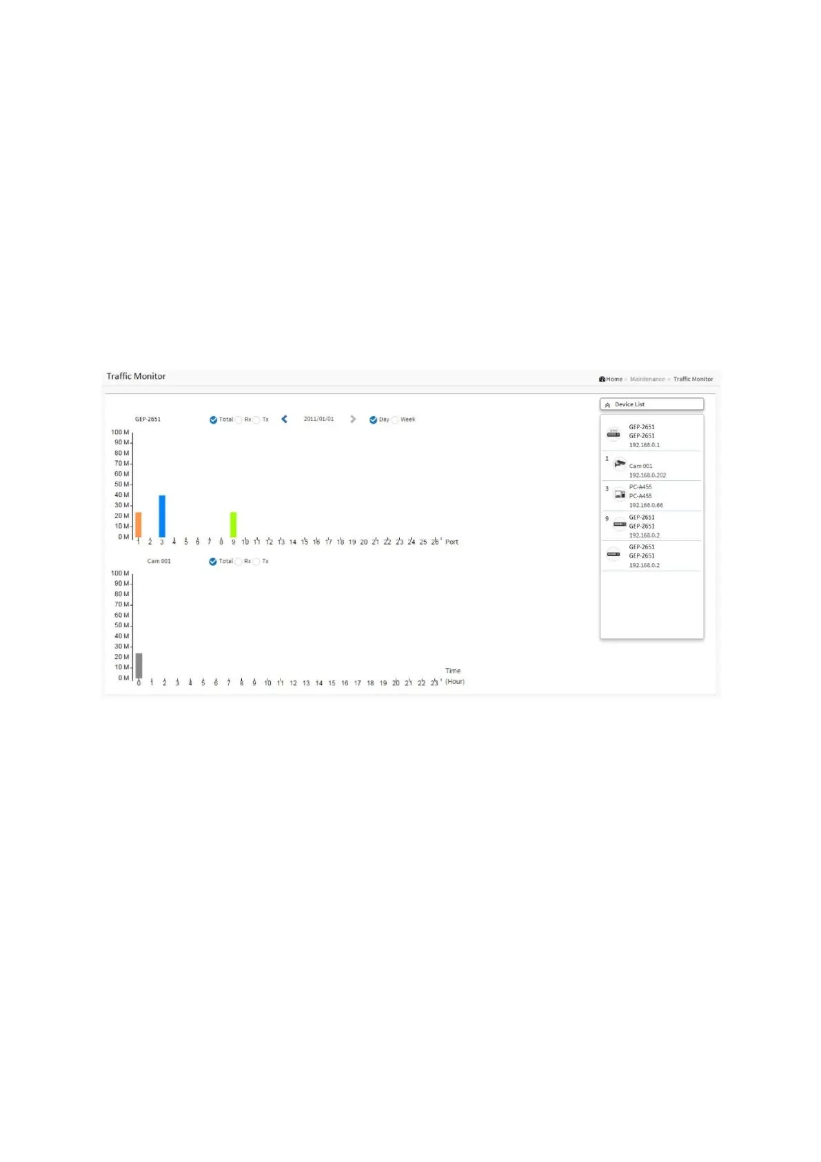 This page displays visual chart of network traffic of all the devices managed by PoE DMS