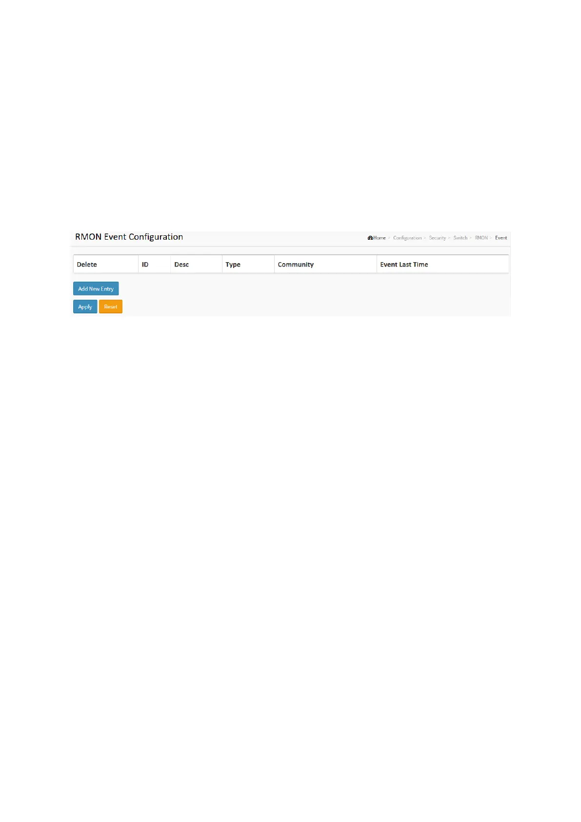 Configure RMON Event table on this page. The entry index key is ID.